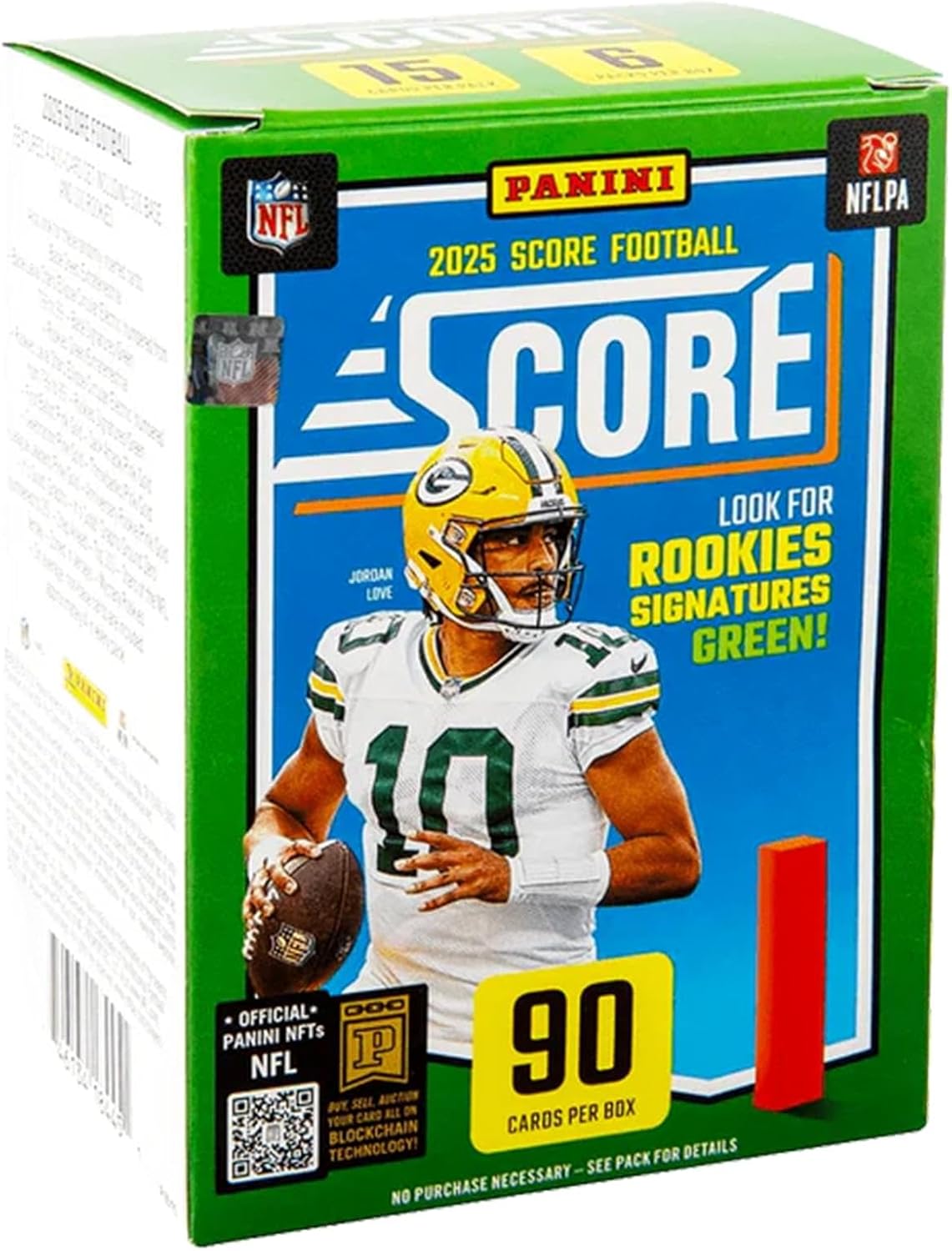 Start the season right with the 2025–26 Panini Score Football Blaster Box – your go-to retail NFL set packed with rookie cards, star players, and blaster-exclusive inserts.