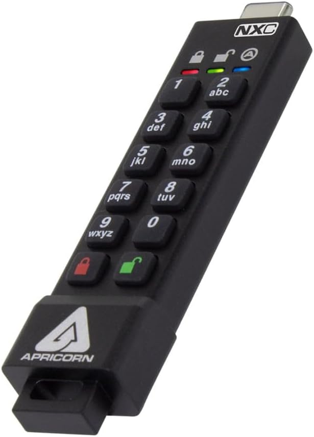 Apricorn 256GB Aegis Secure Key 3 NXC 256-Bit Hardware-Encrypted USB 3.2 Type C Flash Drive, FIPS 140-3 Level 3 Validated (ASK3-NXC-256GB),Black