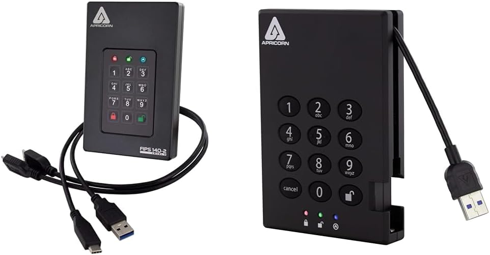 Apricorn 5TB Aegis Fortress L3- FIPS Level 3 Validated USB 3.0 Hardware Encrypted & 2TB Aegis Padlock USB 3.0 256-Bit AES XTS Hardware Encrypted Portable External Hard Drive
