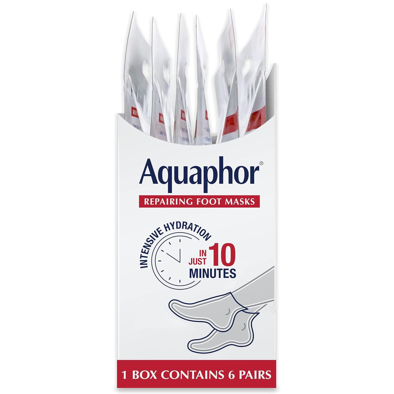 Aquaphor Repairing Foot Masks, Moisturizing Socks for Dry Feet, Hydrating Foot Care Treatment with Avocado Oil and Shea Butter, Pack of 6