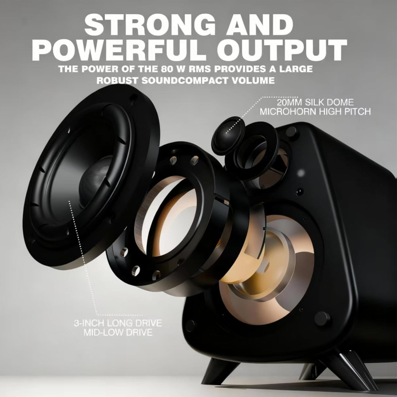 [Powerful Output] Experience room-filling sound with 80W RMS power, driven by a high-efficiency Class-D amplifier. The AS31 combines a 20 mm silk dome tweeter for crystal-clear highs with a 3″ long-stroke aluminum bass/mid driver for deep, punchy lows and balanced audio across every detail