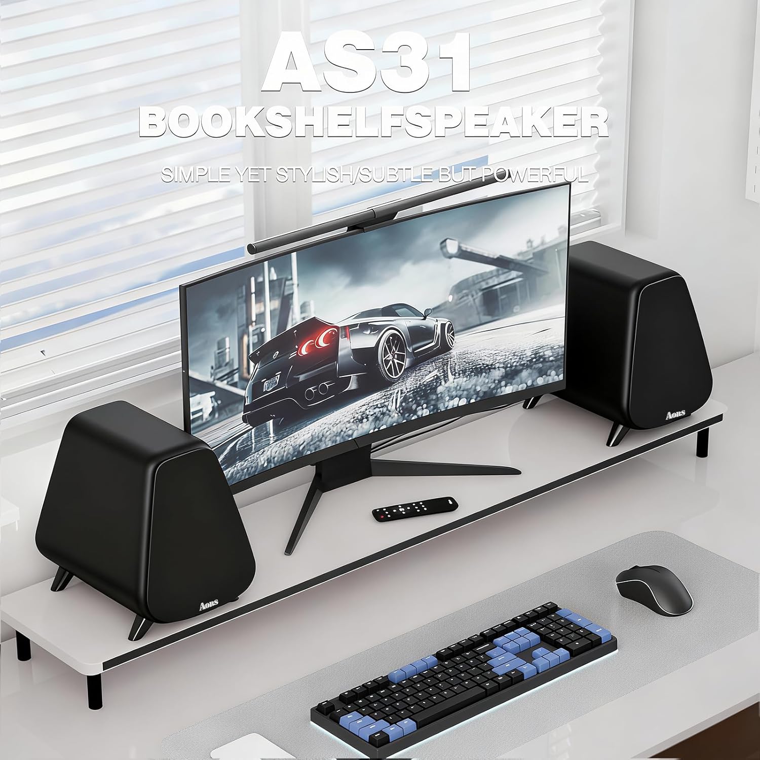 AS31 Active Bookshelf Speakers – 80W RMS 2-Way Stereo / 3″ Long-Stroke Woofer & 20 mm Silk Dome Tweeter – Bluetooth 5.3, RCA + Optical Inputs, Sub-Out & Remote Control – Wooden(Black)