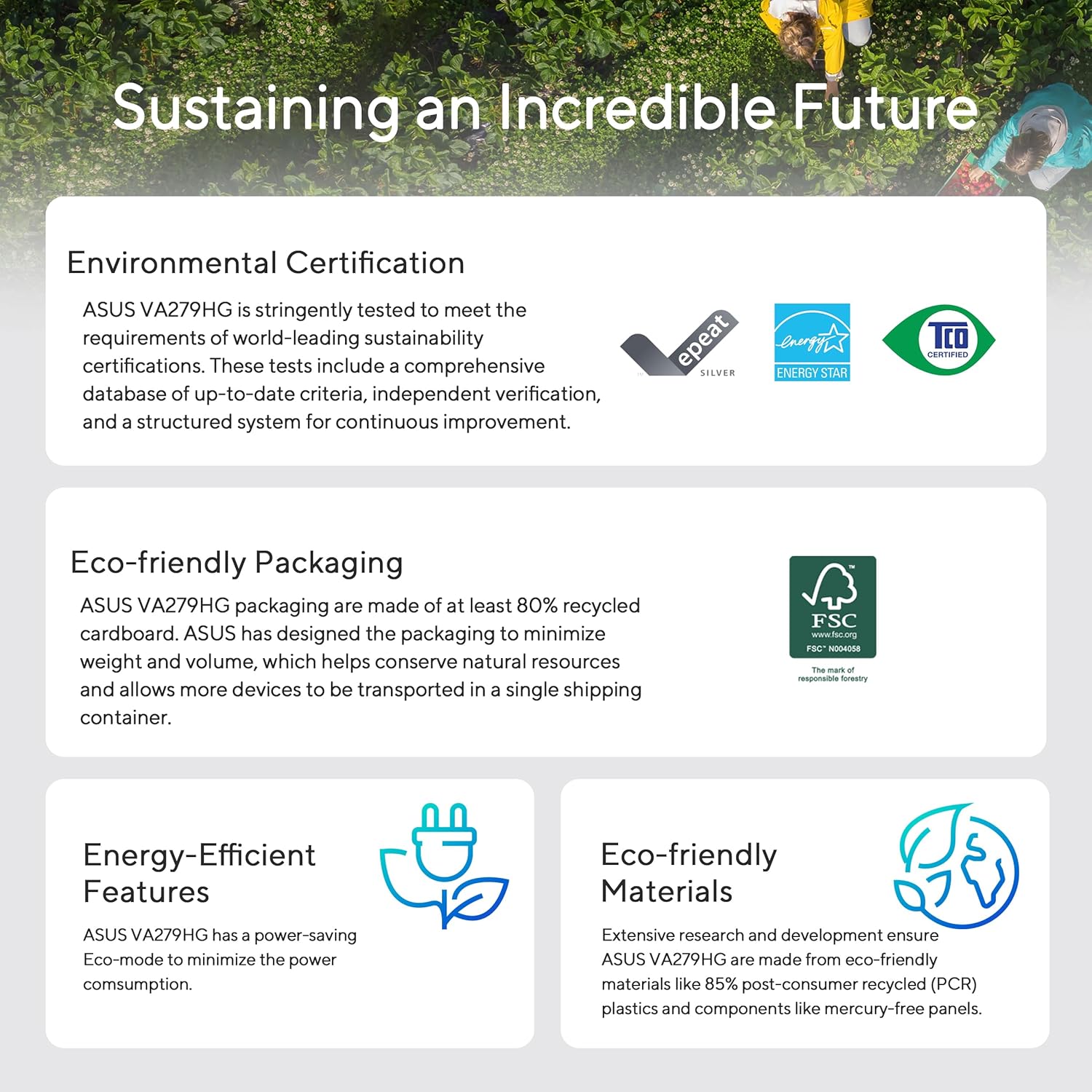 ASUS VA279HG Eye Care Gaming Monitor features 27-inch IPS panel with Full HD (1920 x 1080) resolution, providing 178° wide viewing angle panel and vivid image quality. Fast 120Hz refresh rate with Adaptive-Sync technology and 1ms MPRT to eliminate screen tearing and choppy frame rates for the smoother-than-ever experience. It also features TÜV Rheinland-certified Flicker-free and Low Blue Light technologies to ensure a comfortable viewing experience.