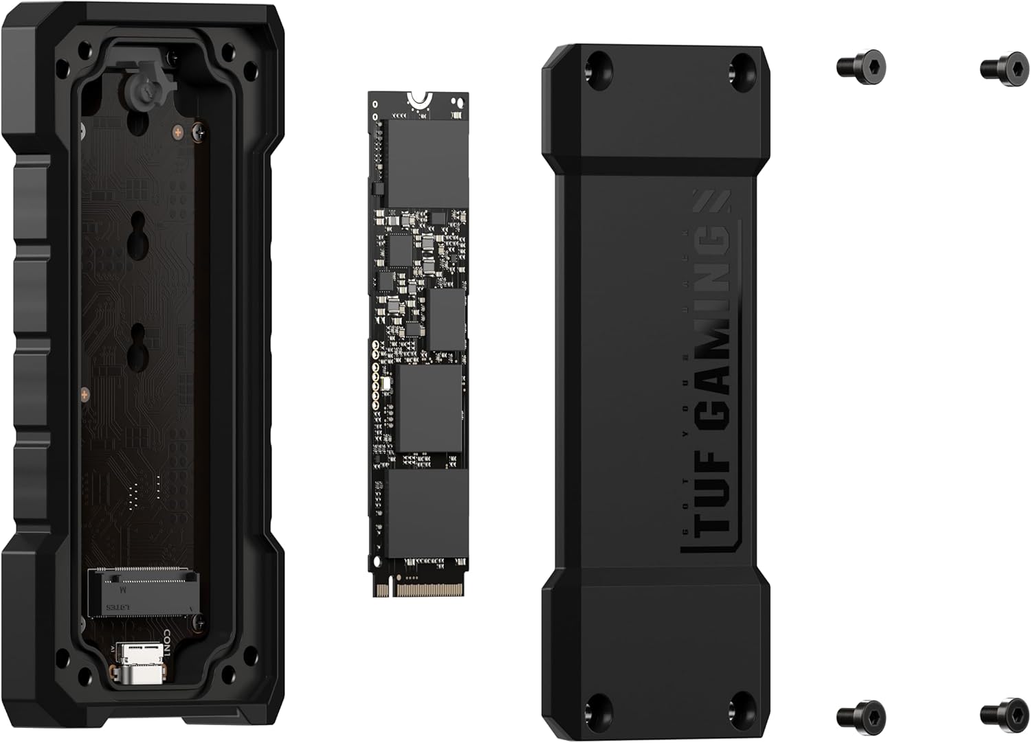 ASUS TUF Gaming A2- USB-C 3.2 Gen 2×2 Portable SSD Enclosure, Dual M.2 NVMe PCIe and SATA, MIL-STD-810H Drop Resistance, IP68 Water and dust Resistance, Aluminum Alloy Chassis and a Thermal pad