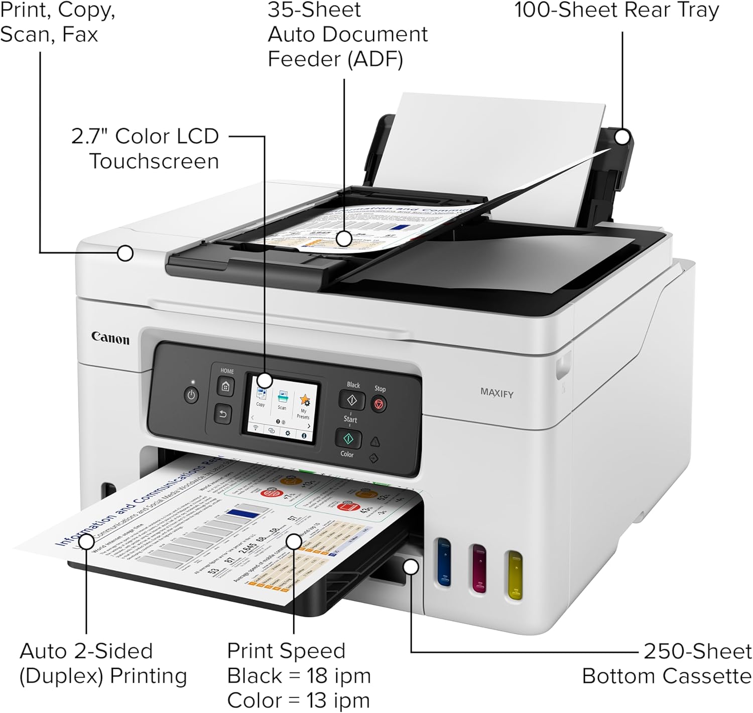 Canon Megatank GX4020 All-in-One Wireless Supertank Printer with Print, Copy, Scan and Fax | Auto Document Feeder | Mobile Printing | 2.7″ LCD Touch Screen