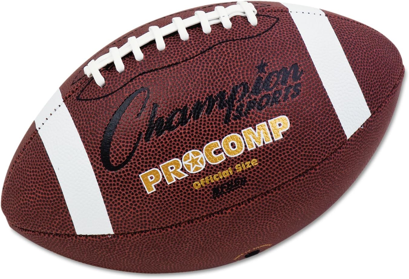 The Champion Sports Pro Composition Football feels and performs just like a regulation leather ball, thanks to its tacky, water-resistant pro composite cover. Perfect for indoor or outdoor use, it features a durable 2-ply butyl bladder for superior air retention and long-lasting play. The raised laces are made from a special tackified material that provides a better grip, allowing players to build confidence and refine their technique and is ideal for both competitive games and practice sessions. This football is available in Official size, meeting High School NCAA® and NFHS® specifications, Intermediate size (ages 12-14), Junior size (ages 10-12) & Pee Wee size (ages 9 and under).