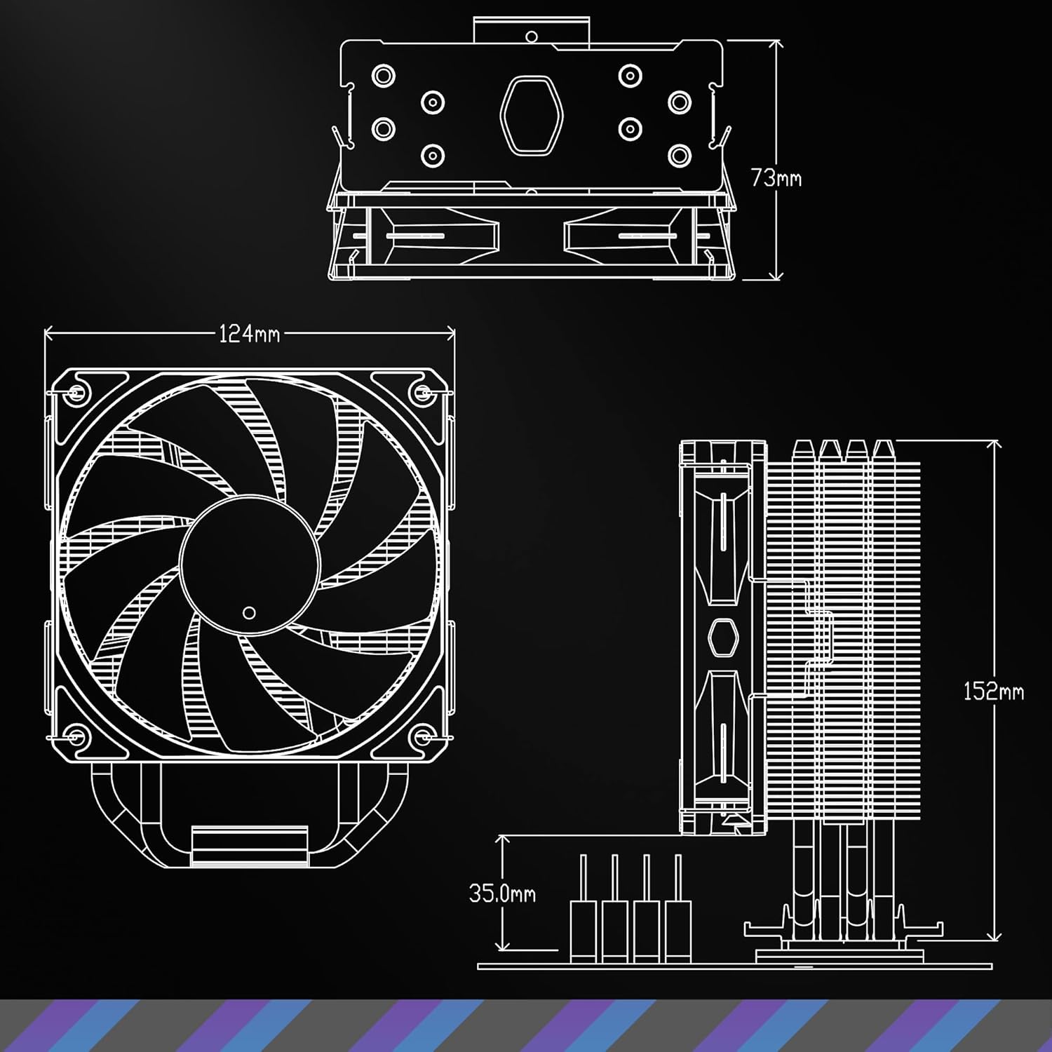 Cooler Master Hyper 212 Spectrum V3 ARGB CPU Air Cooler, 120mm PWM Fan, 4 Copper Heat Pipes, 152mm Tall, AMD Ryzen AM5/AM4, Intel LGA 1851/1700/1200 Brackets