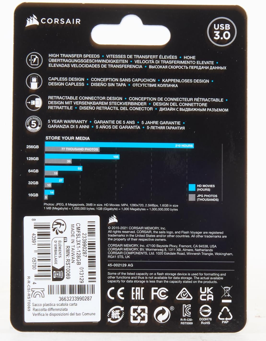 Corsair CMFSL3X1-128GB Flash Voyager Slider X1 128GB USB 3.0 Flash Drive