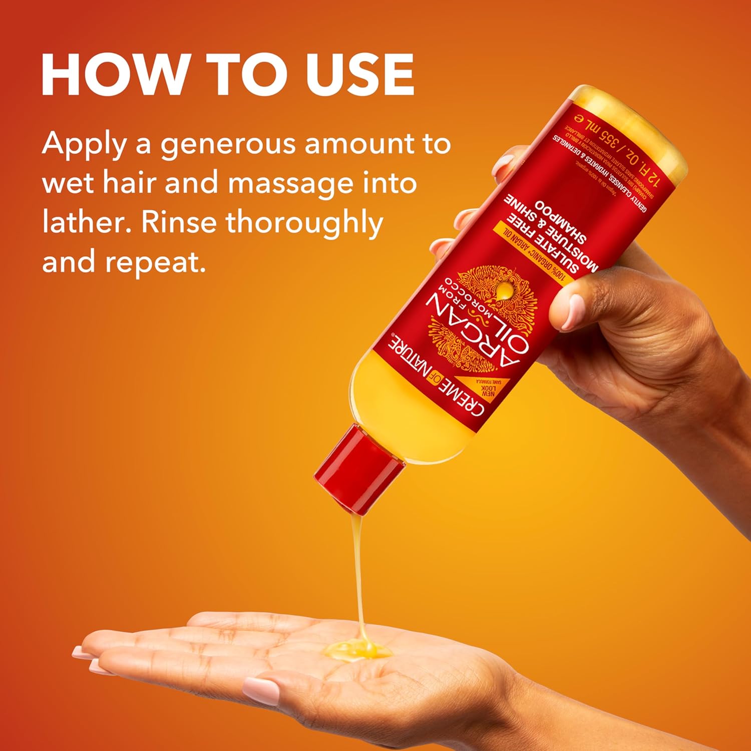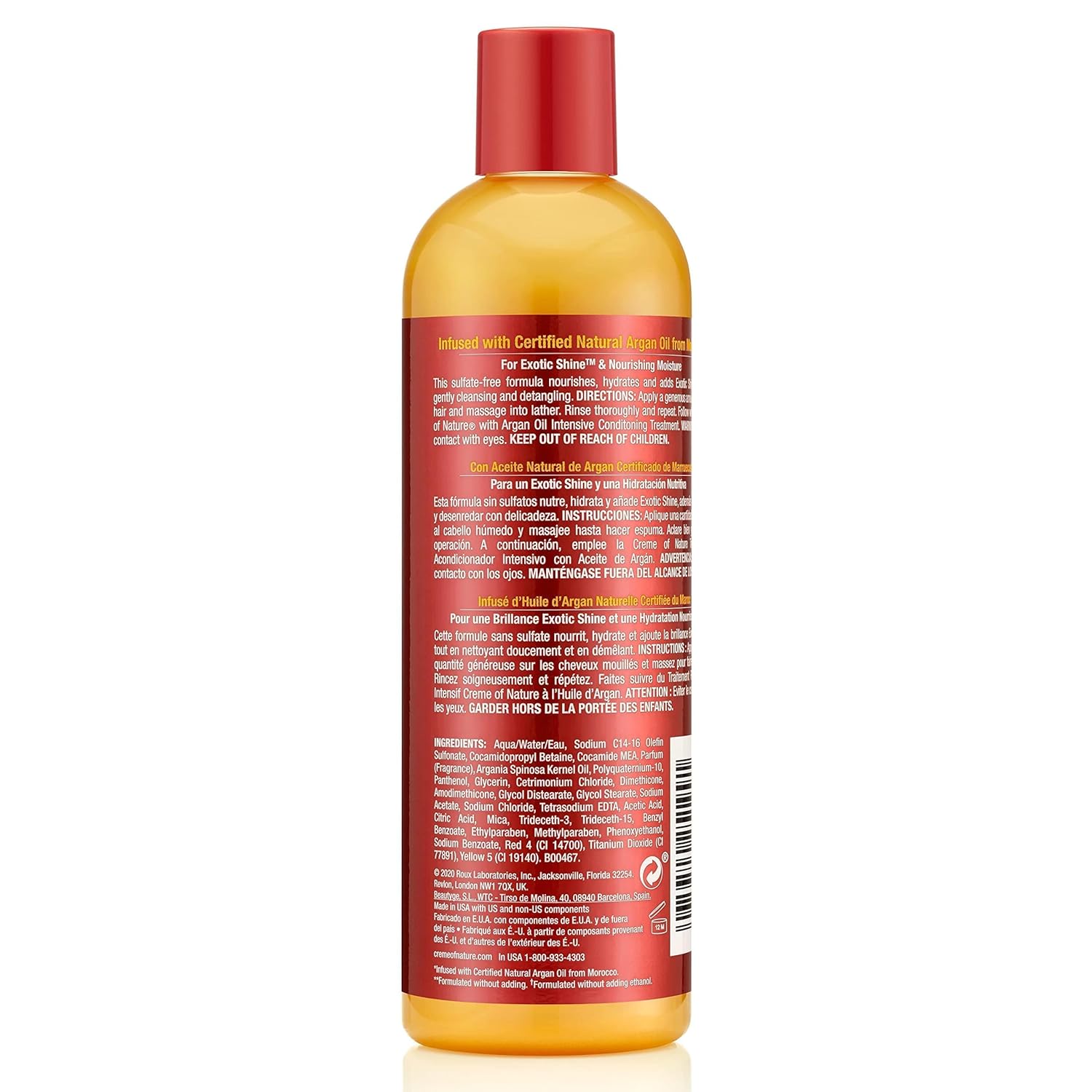 How to Use: Apply a generous amount to wet hair and massage into lather; rinse thoroughly and repeat; follow with Cream of Nature Argan Oil from Morocco Intensive Conditioning Treatment