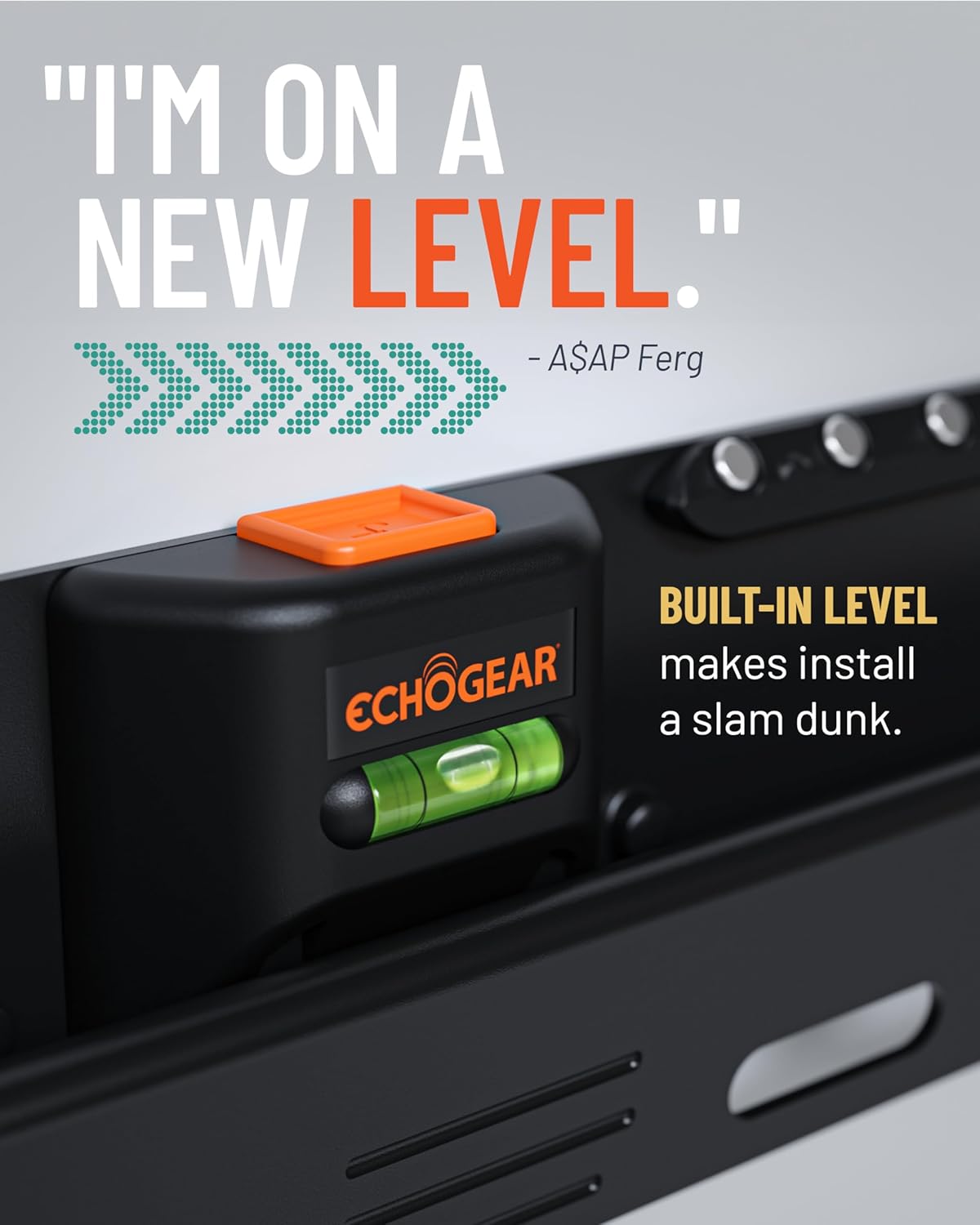 Get it straight: Built-in bubble level means you’ll get your installation jussssst right the first time. After you’re done, lock it in place with the oddly satisfying safety button.