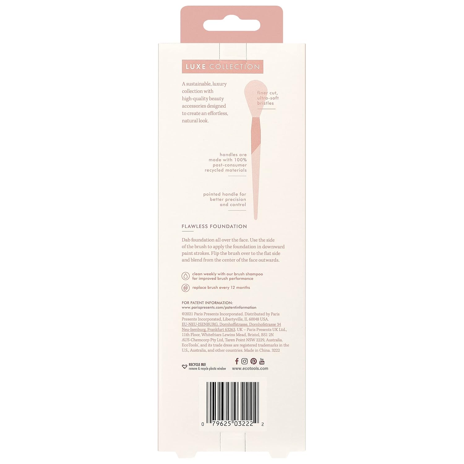 EcoTools Ecofriendly Luxe Flawless Foundation Makeup Brush for Liquid & Cream Foundation, Dense, Synthetic Bristles, Eco-Friendly Premium Quality Makeup Brush, Vegan & Cruelty-Free, 1 Count