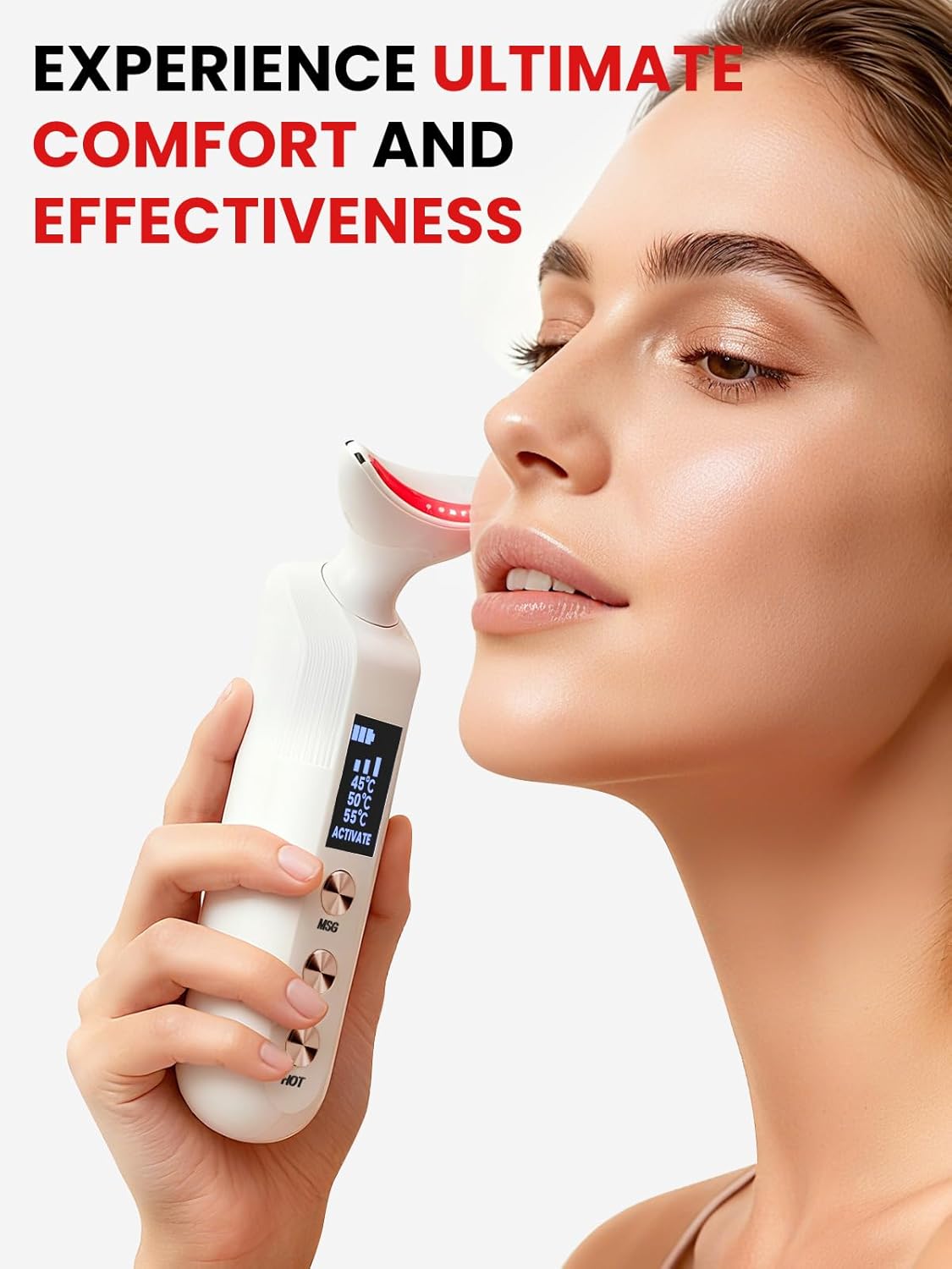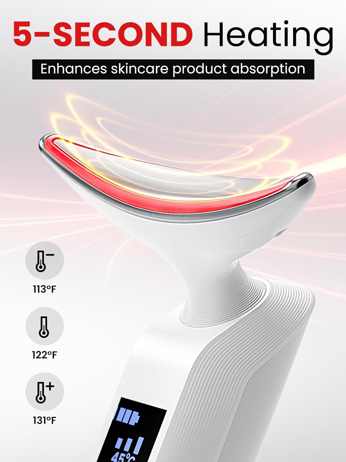 【5 Second Heating】 Facial and neck massager delivers five seconds of heat to promote absorption of skincare products. Face massage tool has three temperatures (113°F, 122°F, 131°F) to experience deep, comforting warm
