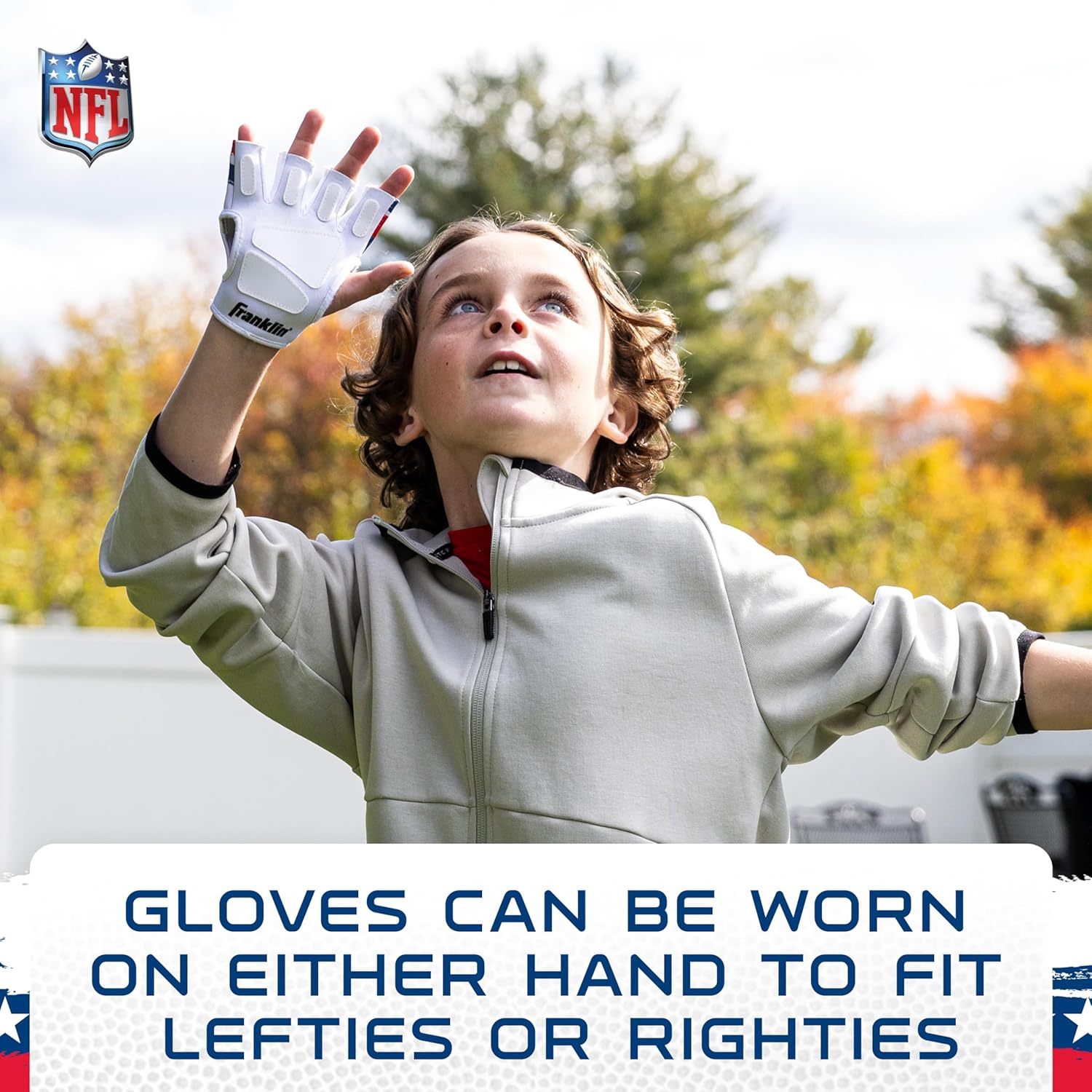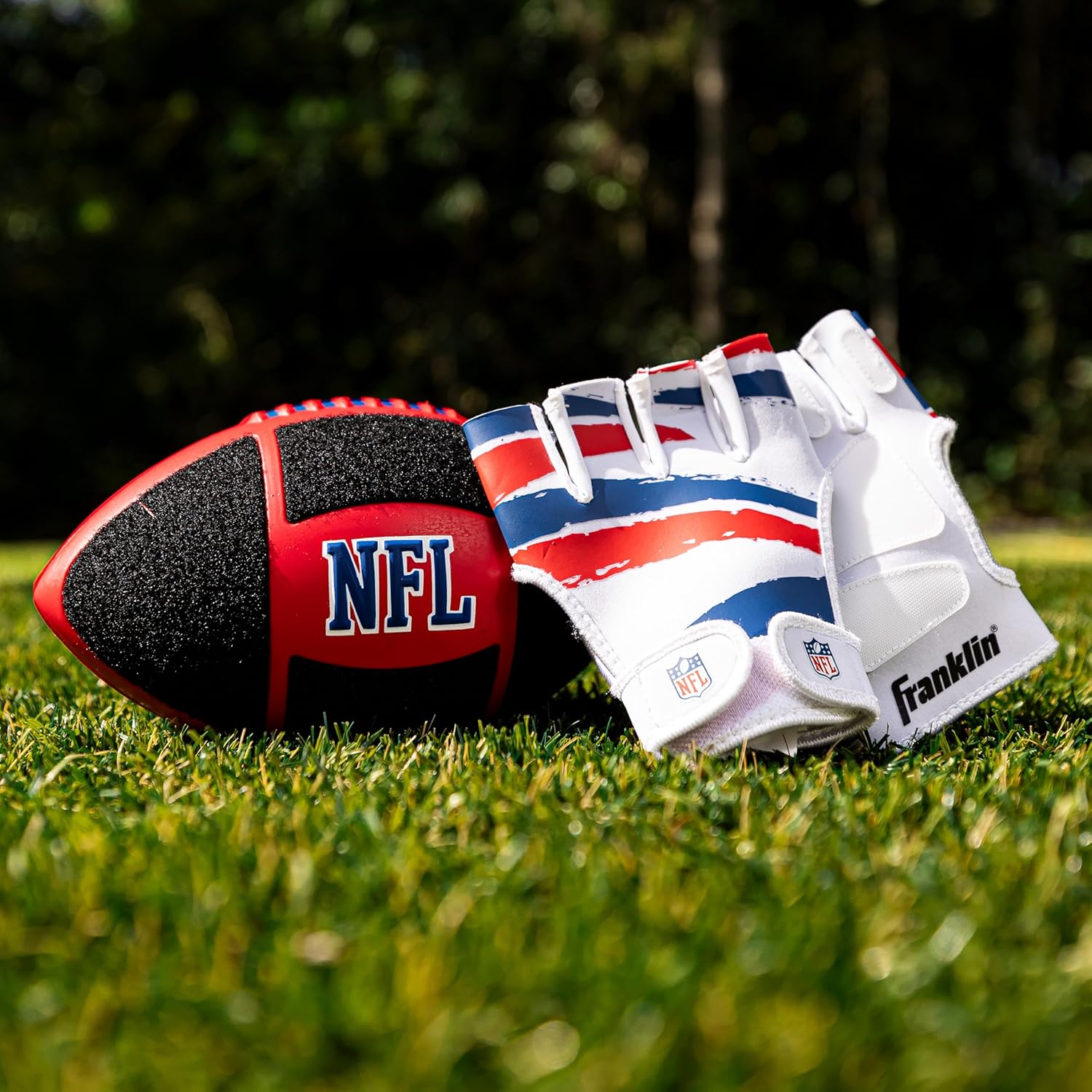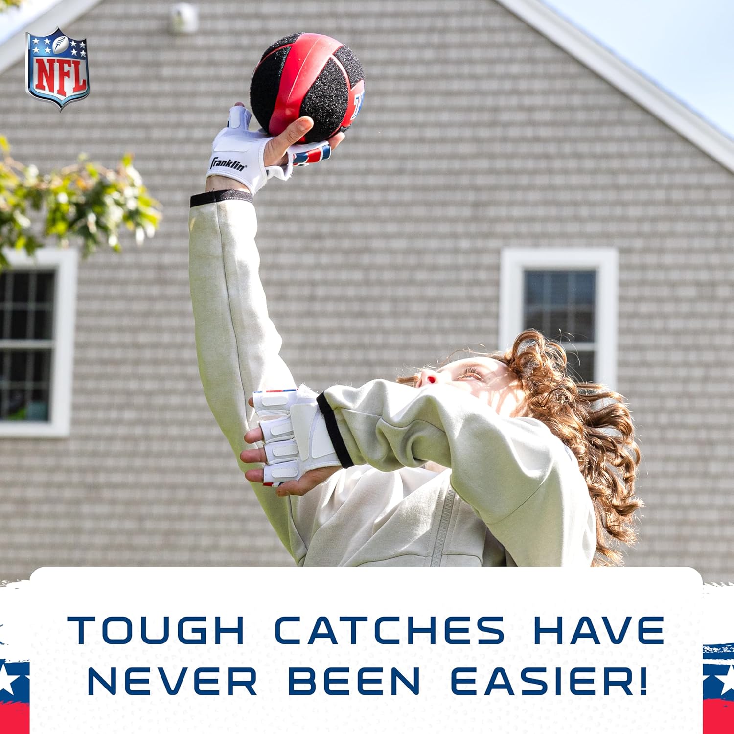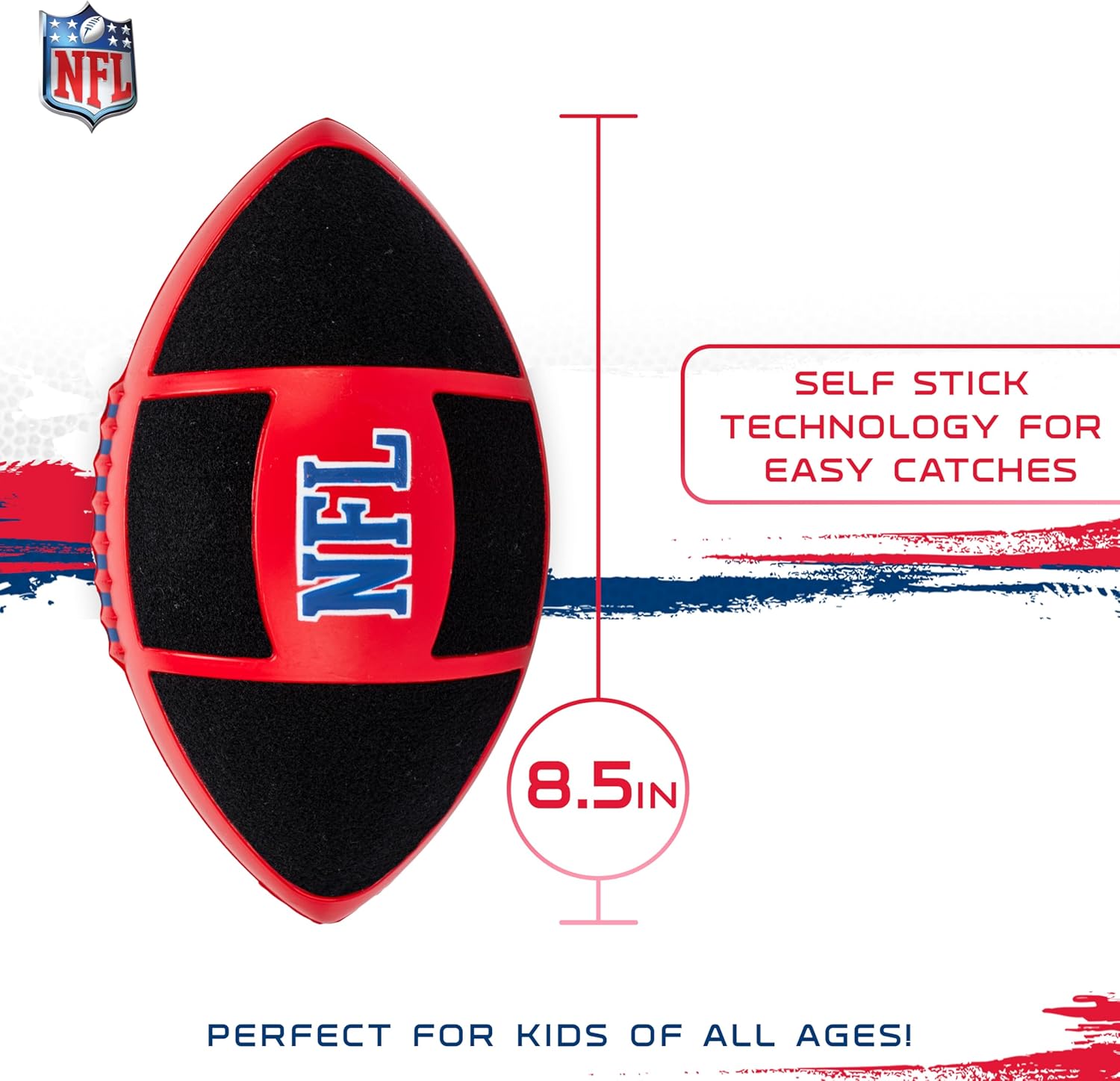 Make learning to throw and catch fun and easy with the Franklin Sports NFL Sticky Fingers Football + Receiver Gloves Set! Designed for kids, this set includes a junior-sized 8.5″ inch foam football with a self-stick surface and a pair of youth receiver gloves with self-stick technology to help kids catch the ball effortlessly. The NFL Sticky Fingers Football and Gloves work together to build confidence as kids develop their throwing and catching skills. This set is perfect for backyard games, making those one handed catches, helping young receivers develop their skills in practice sessions, or just helping introduce kids to the game of football in a fun and engaging way. With its lightweight foam construction and comfortable, easy-to-wear gloves, young athletes will be set for hours of play. Plus, the official NFL logo will help your little athlete feel like their favorite pro receivers. This kids football toy is perfect for any young fan to get up and get moving for active football fun around the house, in the backyard, or out on the field. Get your Franklin Sports NFL Sticky Fingers Football + Receiver Gloves today!