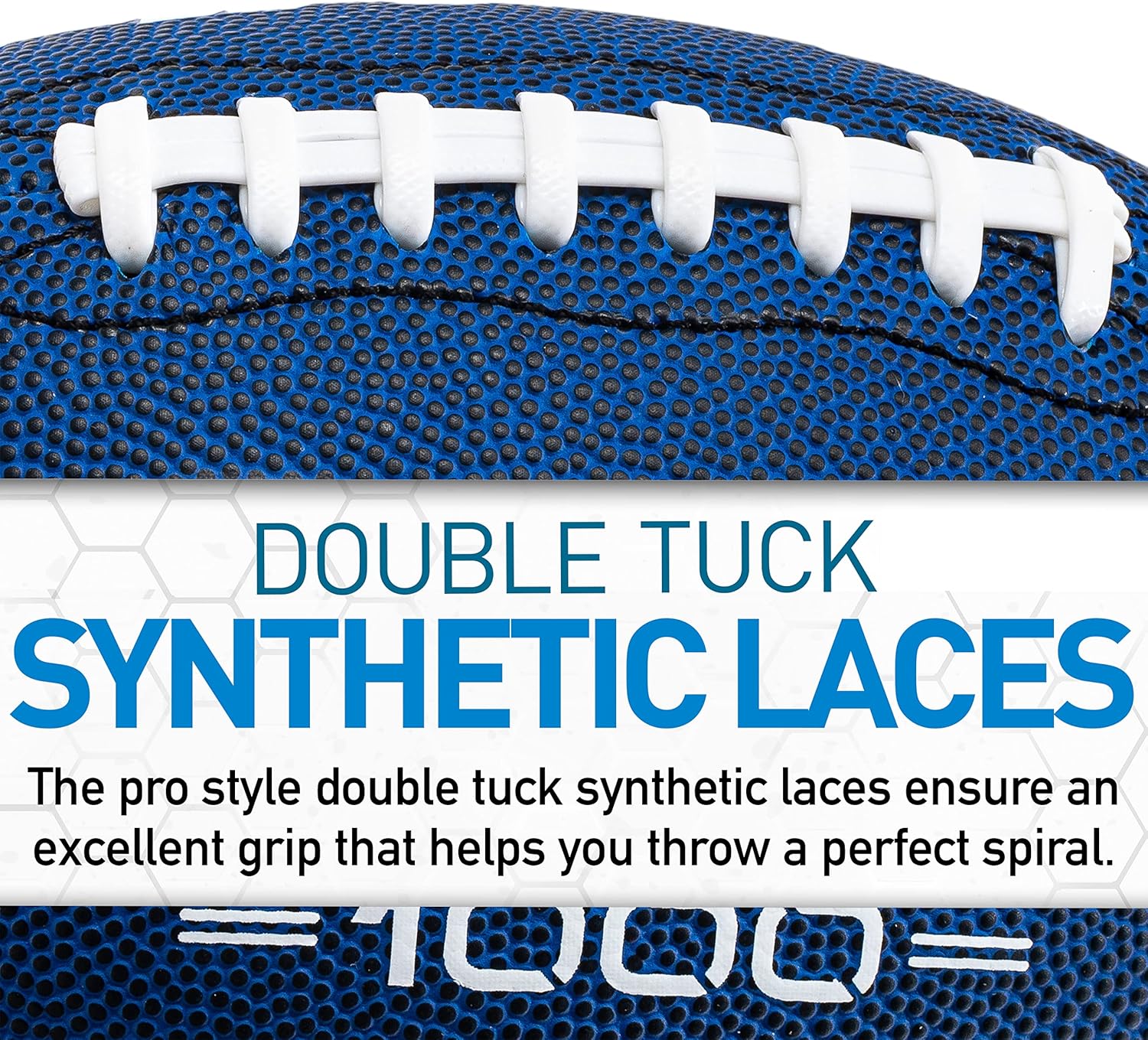 EASY GRIP: The deep-pebble surface material and double tuck synthetic laces ensures extra traction which makes the footballs easier to throw and catch
