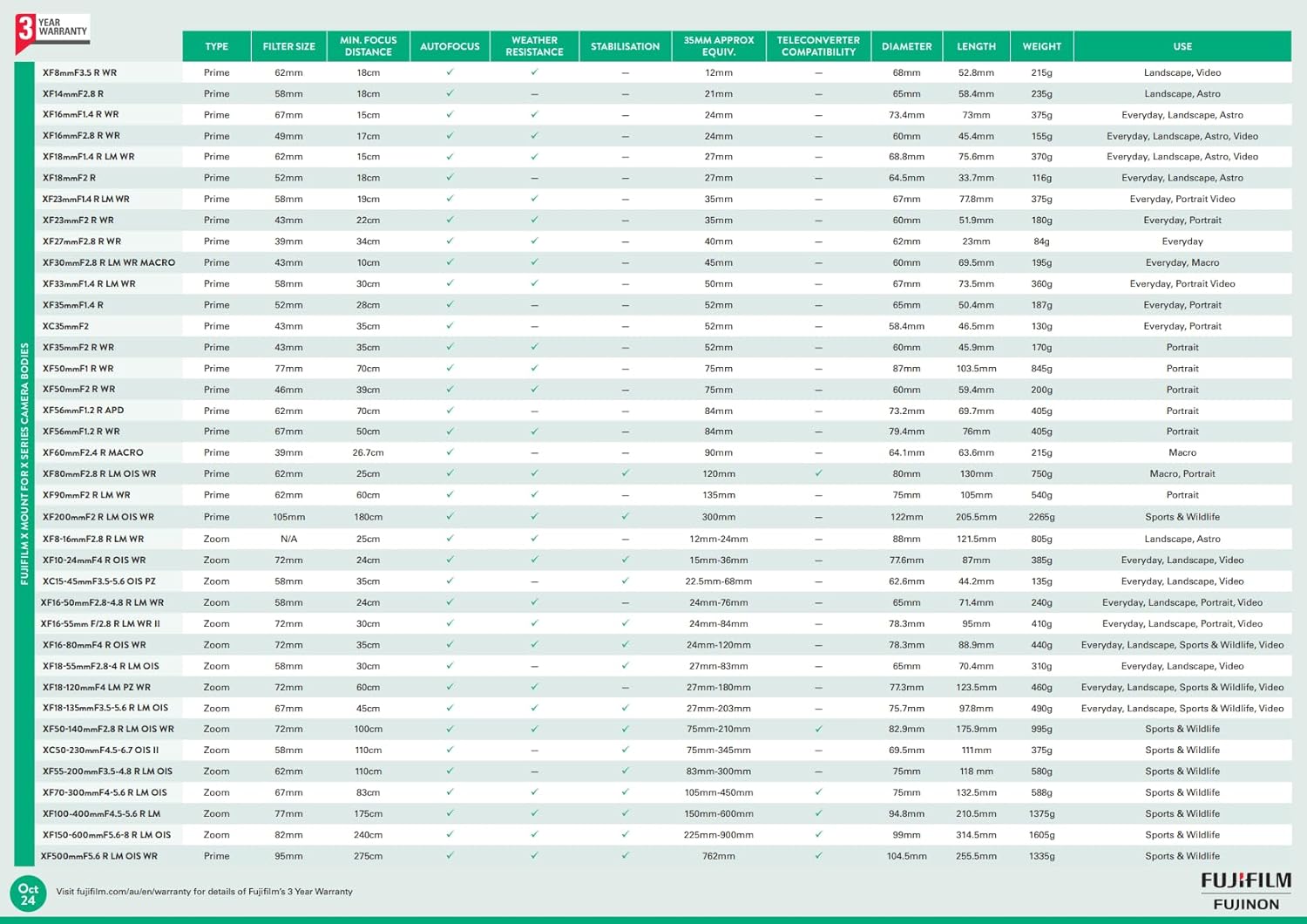 The XF23mmF2 is a compact, wide-angle lens that weighs just 180g and features fast AF for enjoying snapshots with ease. Weather and dust-resistant, it’s capable of operating at low temperatures.