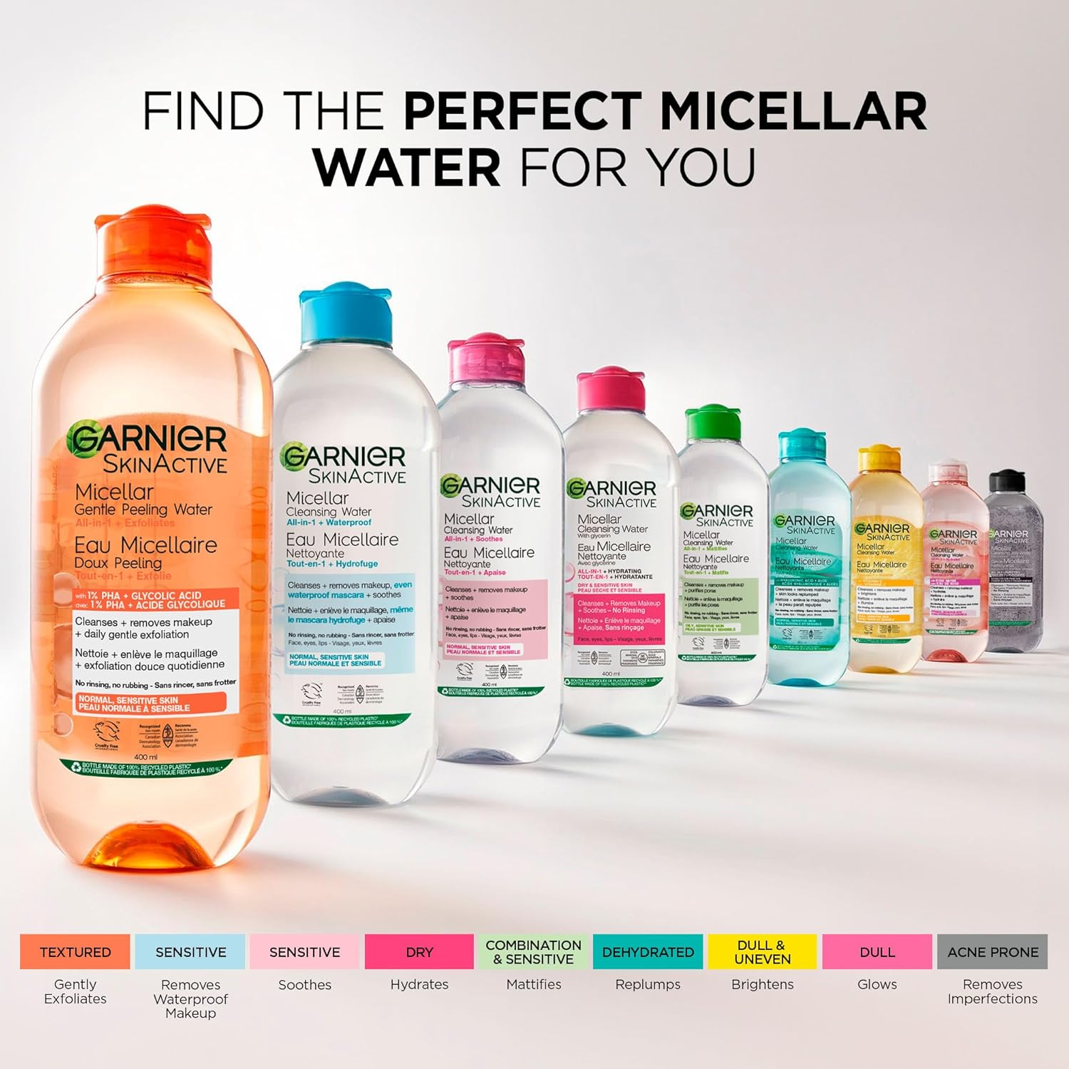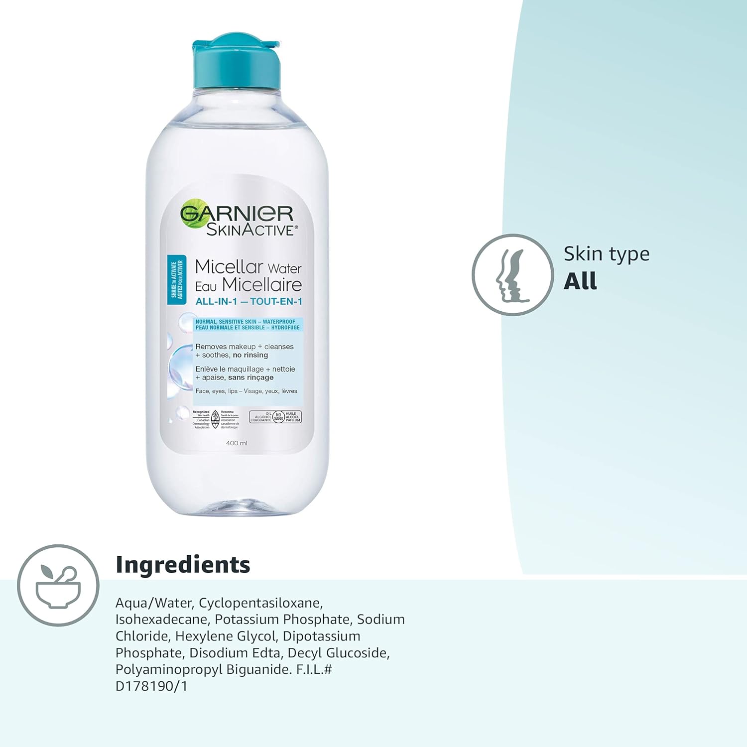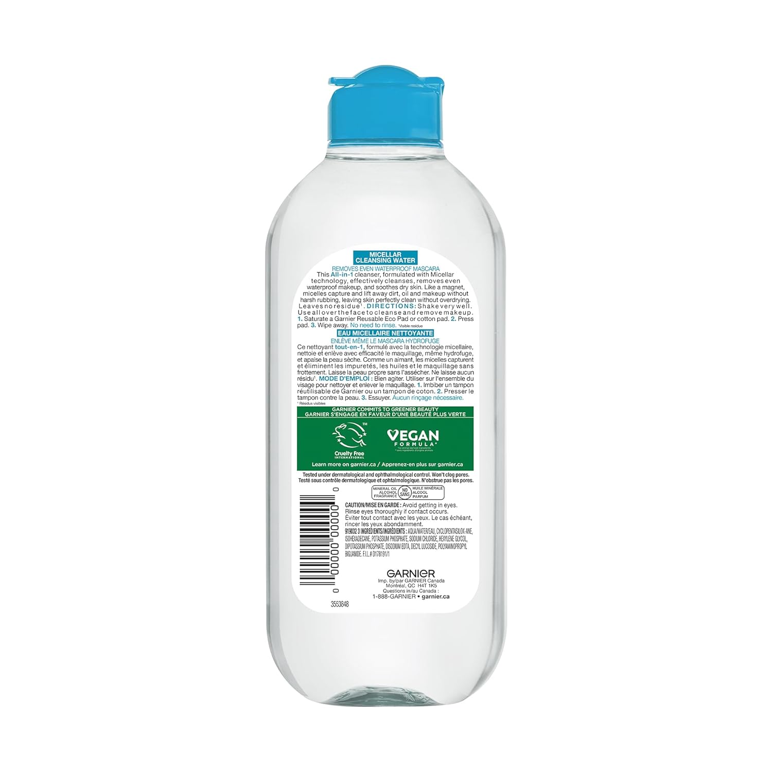 Garnier Micellar Water For Waterproof Makeup, Hydrating Facial Cleanser & Makeup Remover, Suitable for Sensitive Skin, Vegan, Cruelty Free, 13.5 Fl Oz (400mL), 1 Count