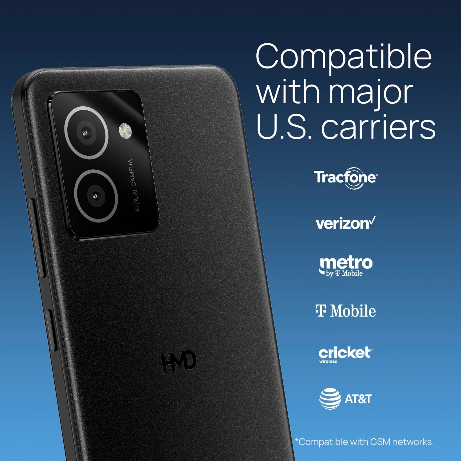 HMD Vibe | Verizon, T-Mobile, AT&T | Unlocked Smartphone | Android 14 | 2 Day Battery | 6.56″ 90Hz HD+ Display | 6GB/128GB | 13MP Dual Camera | US Version | Charcoal