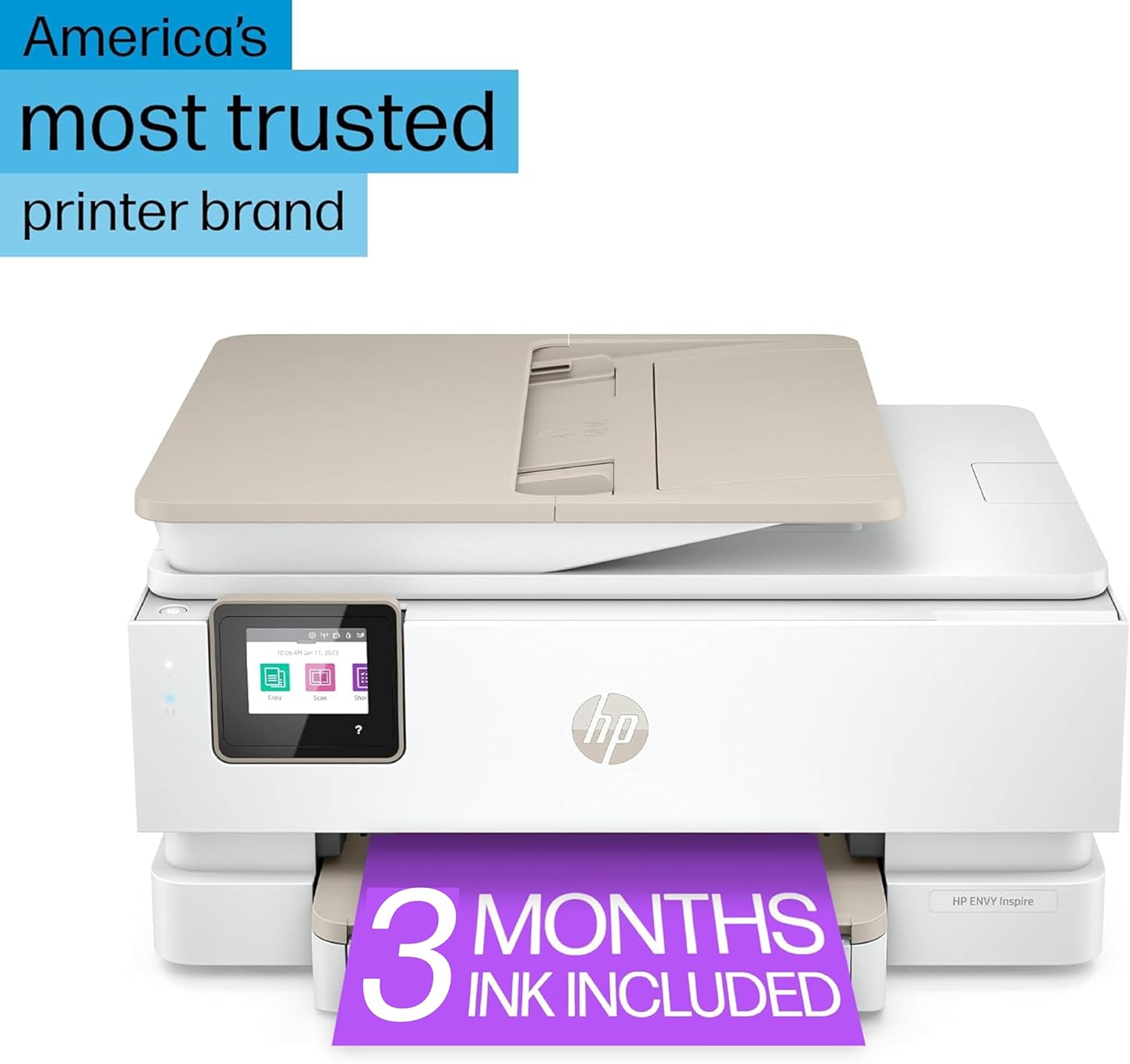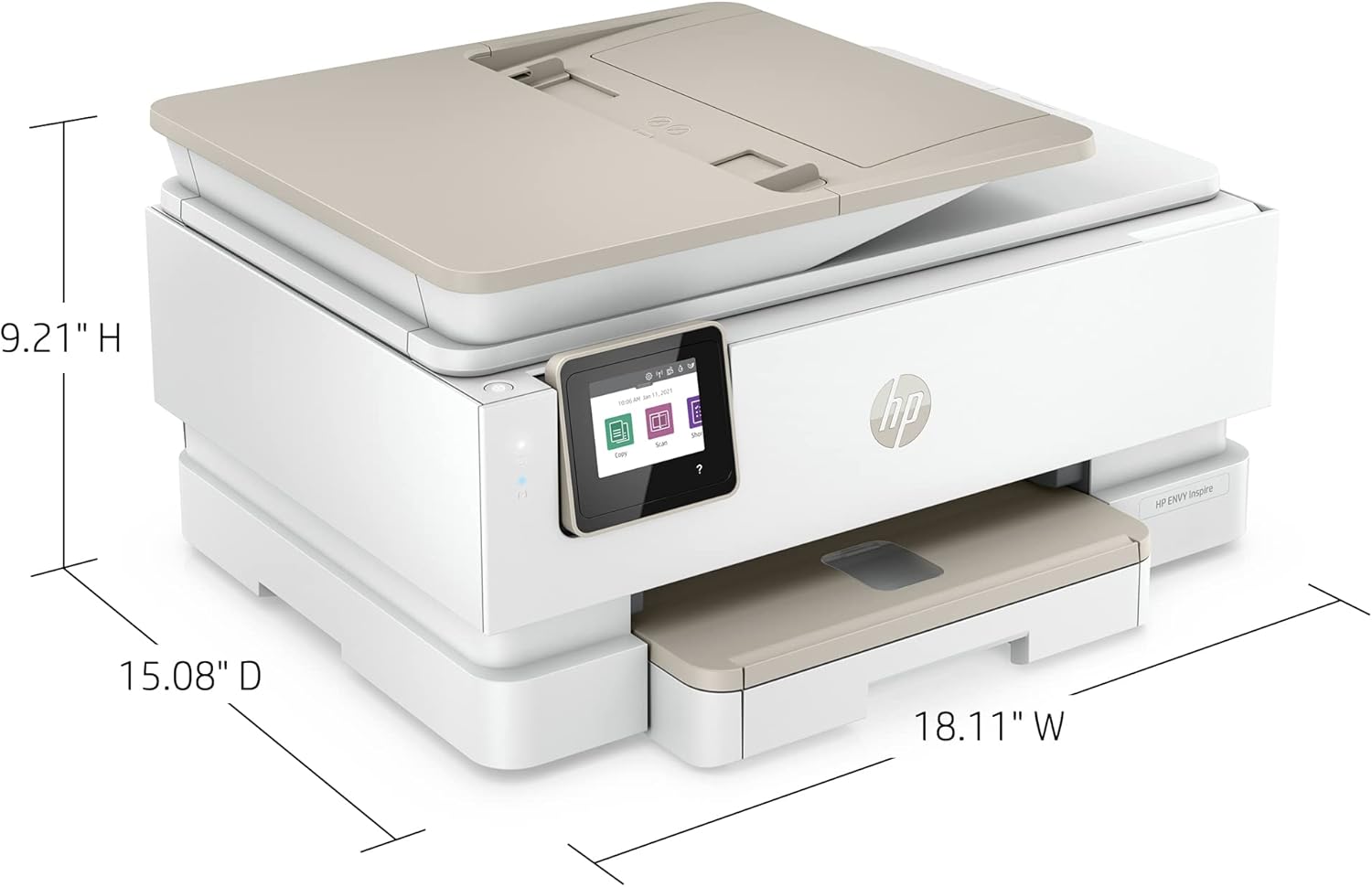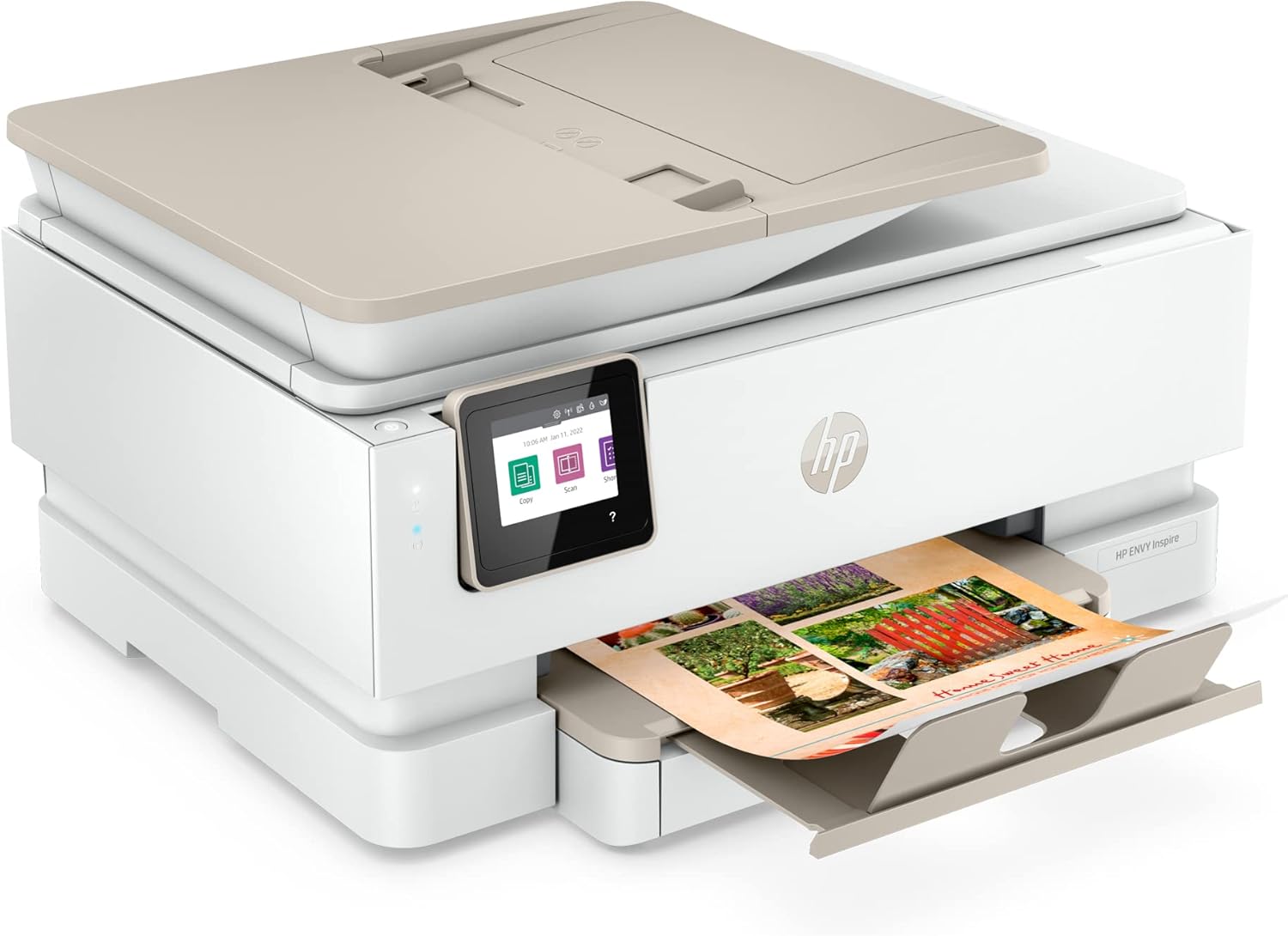 The HP ENVY Inspire 7958e is a premium multi-purpose home printer with everything families need to learn, work, and create. Loaded with features to print high-quality photos, homework, office docs and everything else. Includes the optional HP+ Smart Printing System that keeps itself up to date and ready to print from virtually anywhere at any time—at no additional cost.