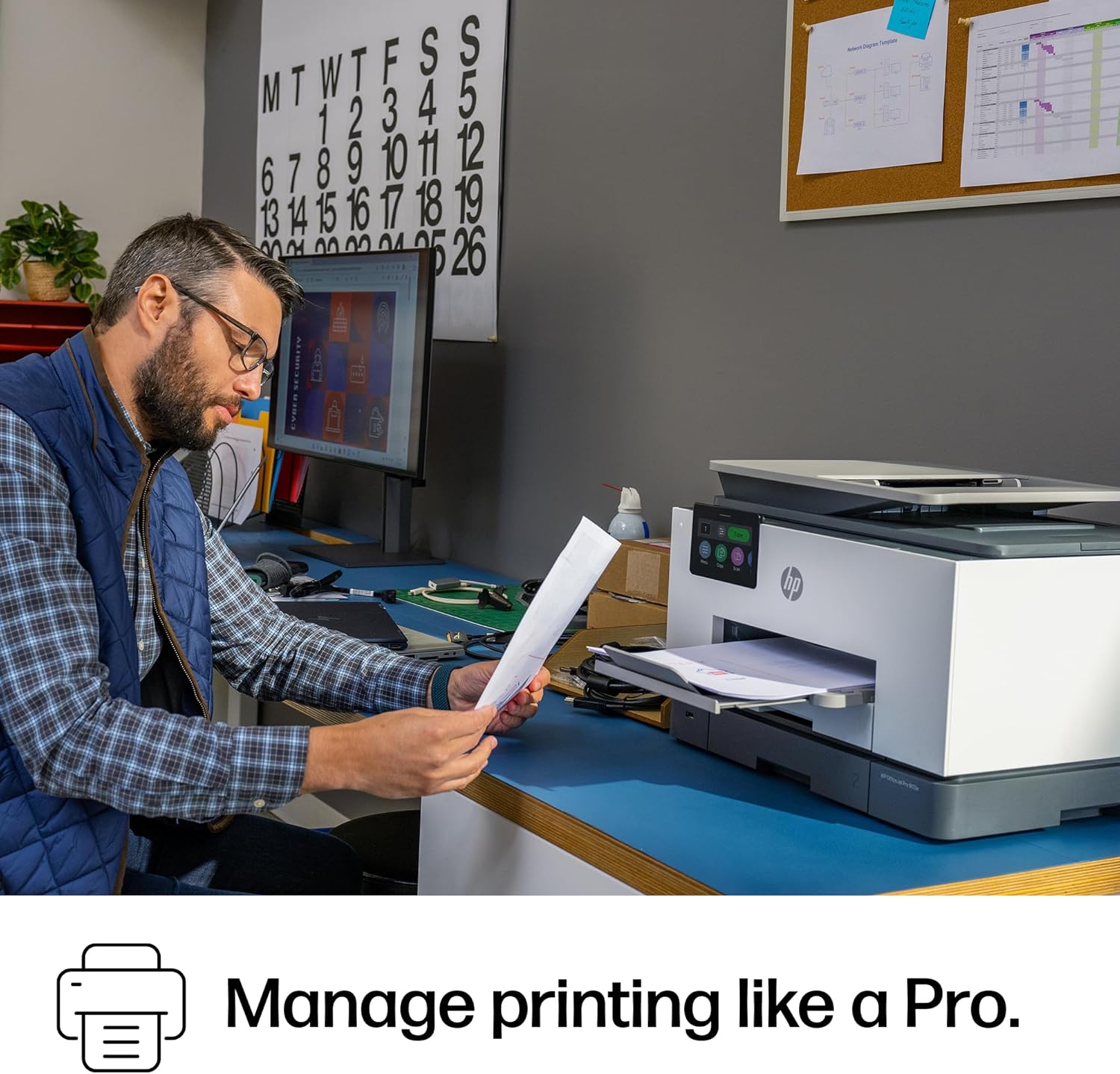 The HP OfficeJet Pro 9135e delivers fast color printing, 500-sheet paper capacity, and duplex scanning and copying. It’s AI-enabled to intuitively adapt to your workflow, with wireless and security features that keep your multifunction printer up to date and secure.