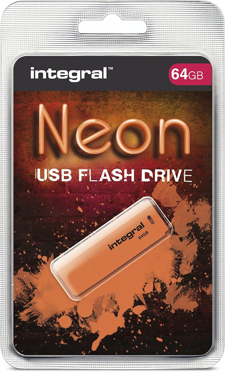 Integral 64GB Neon Orange USB 2.0 Flash Drive