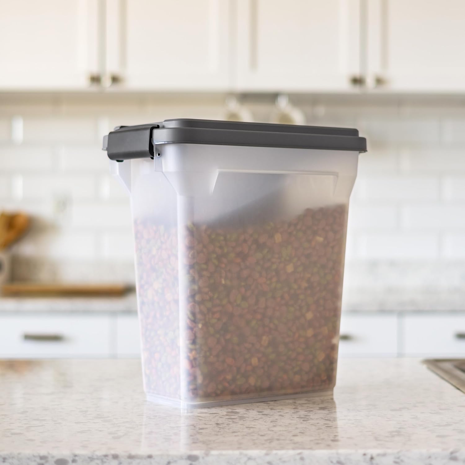 PET FOOD PERFECTED: Our pet food food storage container is great for storing up to 13 lbs of dry food (capacity varies by type of food). Perfect for dogs, cats, birds, and more.