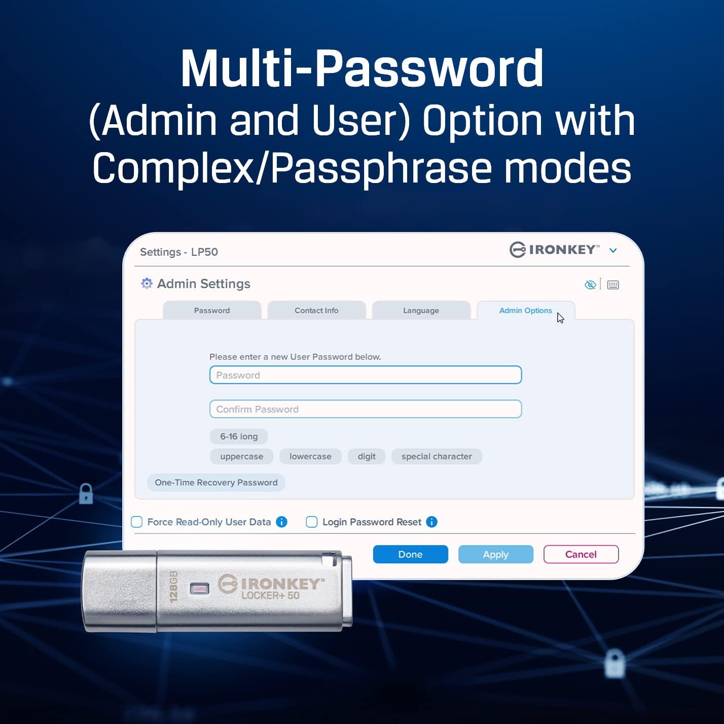 Multi-Password (Admin and User) Option with Complex/Passphrase Modes