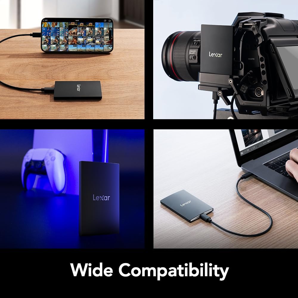 Lexar 1TB SL500 Portable SSD, Up to 2000MB/s, Compatible w/Type-C Laptops, iPhone 15/16, Smartphones, Tablets, PS5, Xbox, USB 3.2 Gen 2×2, Slim & Lightweight, External SSD, Black (LSL500X001T-RNBNU)