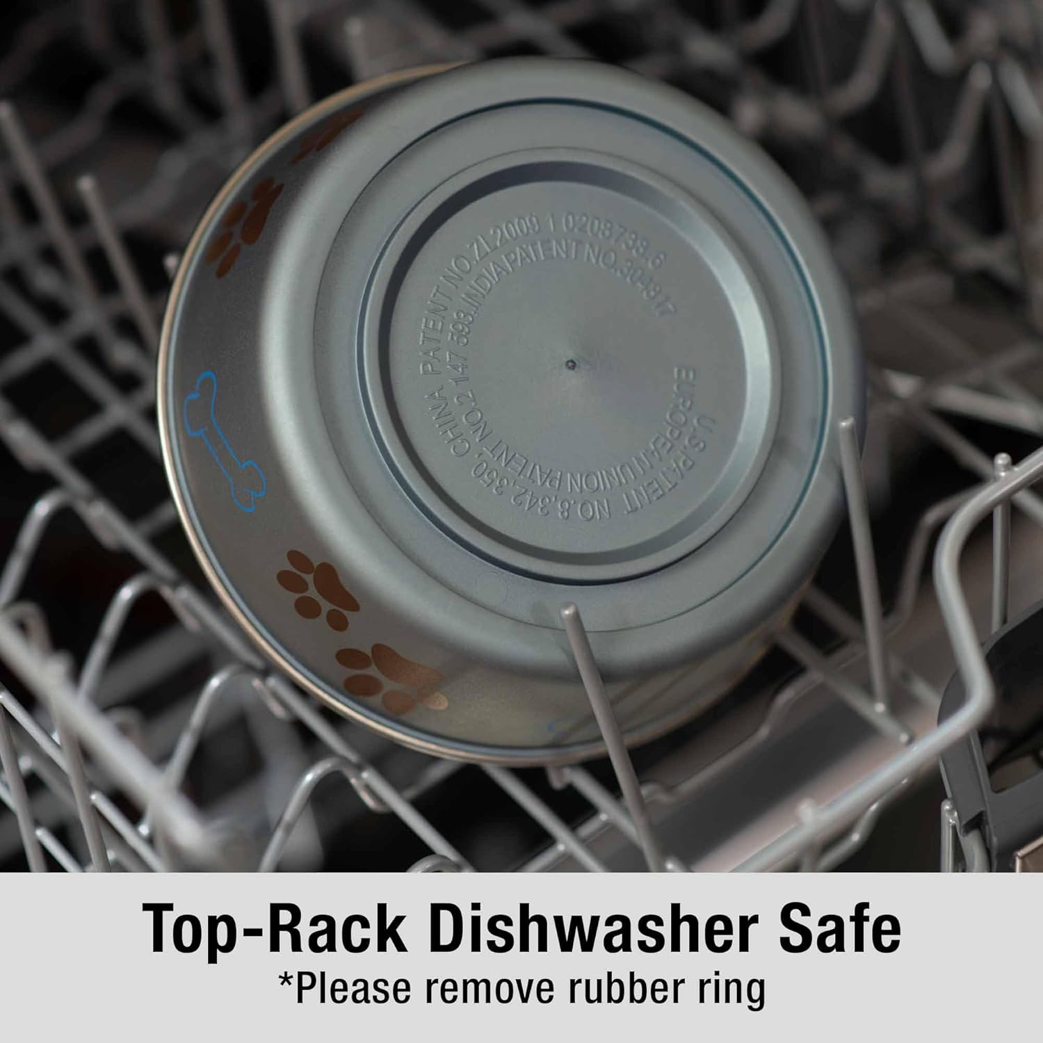 This extra large blueberry blue stainless steel dog food and water bowl has a no-tip, no-skid design that prevents spills, making a Bella Bowl the perfect dish for your furry friend. These bowls are designed to be both functional and stylish. Whether you use it for dry or canned food or water, both you and your pet will enjoy the design and function of these bowls. Your pets mean the world to you, which is why these bowls are of the highest quality. They feature a revolutionary, patented and award-winning design. No matter which size or color option you choose, you’ll bring the bestselling bowl in the pet industry into your home. Since your dog bowls likely sit out between meals, ensure they work well with your decor. Available in an array of sophisticated shades, Loving Pets Bella Bowls can complement any aesthetic with an expanding range of metallic colors. The paw print adds a decorative element and finishing touch, making these bowls just what you’re looking for. Along with offering a stylish appearance, these bowls provide exceptional durability. They are built to last with an interior made out of stainless steel and an attractive polished poly-resin exterior. Each Loving Pets Bella Bowl features a removable soy-based rubber ring. If your dog has a habit of nosing their food or water bowl around, this rubber base will help keep the bowl in place instead of sliding their meal all around your home. The no-skid dog bowl design also helps prevent spills and noise during mealtimes. These vet-recommended stainless steel bowls are also dishwasher safe, making it easier than ever to keep your pet’s food or water bowls clean and hygienic. The design doesn’t hold odors and is rust-resistant, making it an excellent alternative to plastic. Remove the rubber base and toss the bowl in the dishwasher, reducing your daily cleanup time.