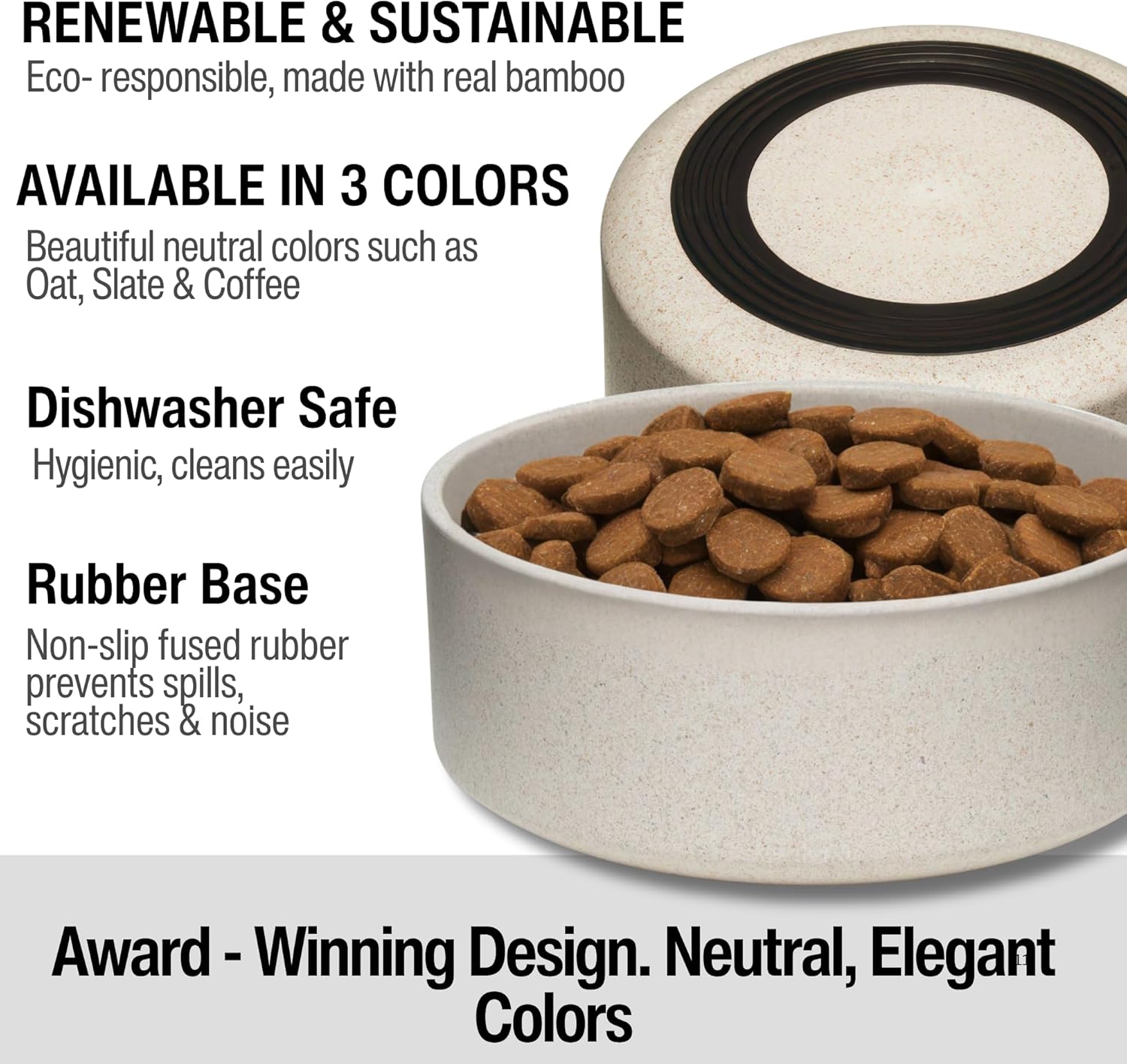 Loving Pets – Dolce Bamboo – Eco-Friendly Pet Bowls & Dishes for Dog, Cats, Puppy Food and Water Dish -Sustainable and Dishwasher Safe, Made with Real Bamboo (Large, Oat-Beige)