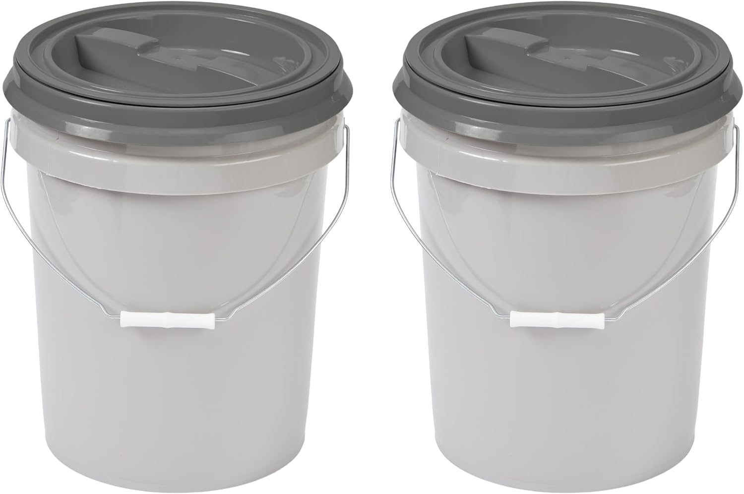 Mighty Tuff 5 Gallon / 21 Pound Pet Food Storage Container, Pack of 2 with Metal Handle and Airtight Lid to Lock in Freshness, Light Grey Base & Dark Grey Lid