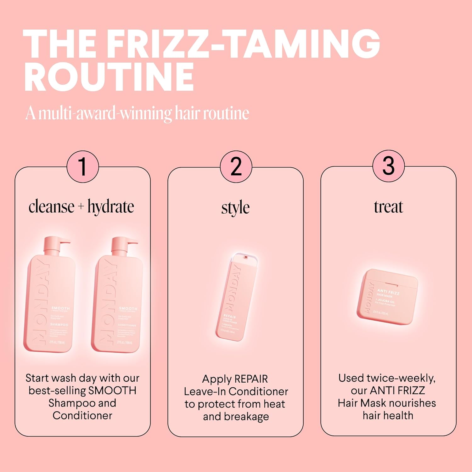 MONDAY HAIRCARE Smooth Shampoo + Conditioner Bathroom Set (2 Count) 27 oz Each For Frizzy, Coarse & Curly Hair Made with Coconut Oil, Shea Butter & Vitamin E 100% Recyclable Bottle Pink