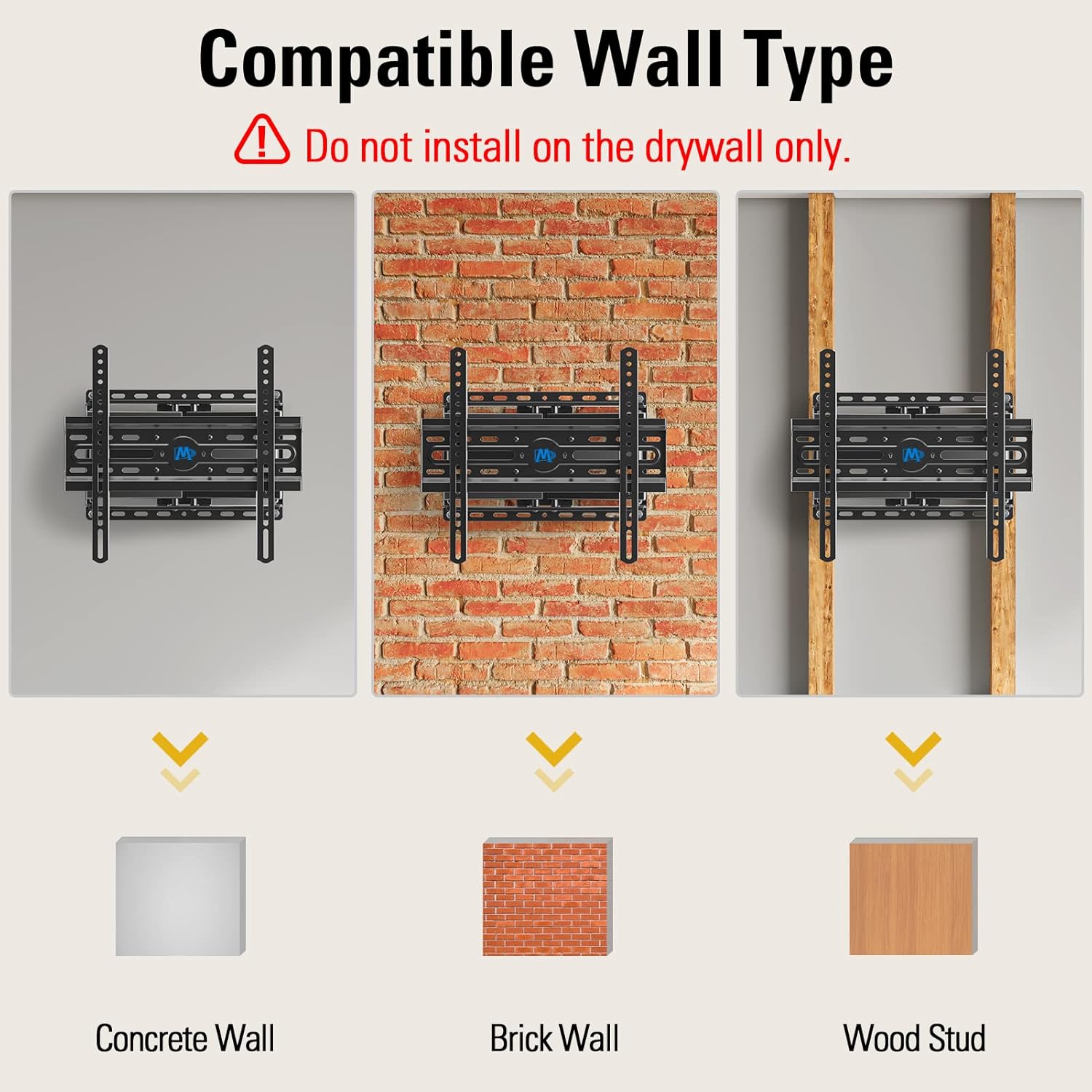 US-based Customer Support: We are glad to answer your pre-purchase and installation questions about TV mounts. Mounting Dream TV wall mounts are NOT FOR DRYWALL INSTALLATION. (Concrete Anchors available on request. Anchors Specifications:φ10x50mm)