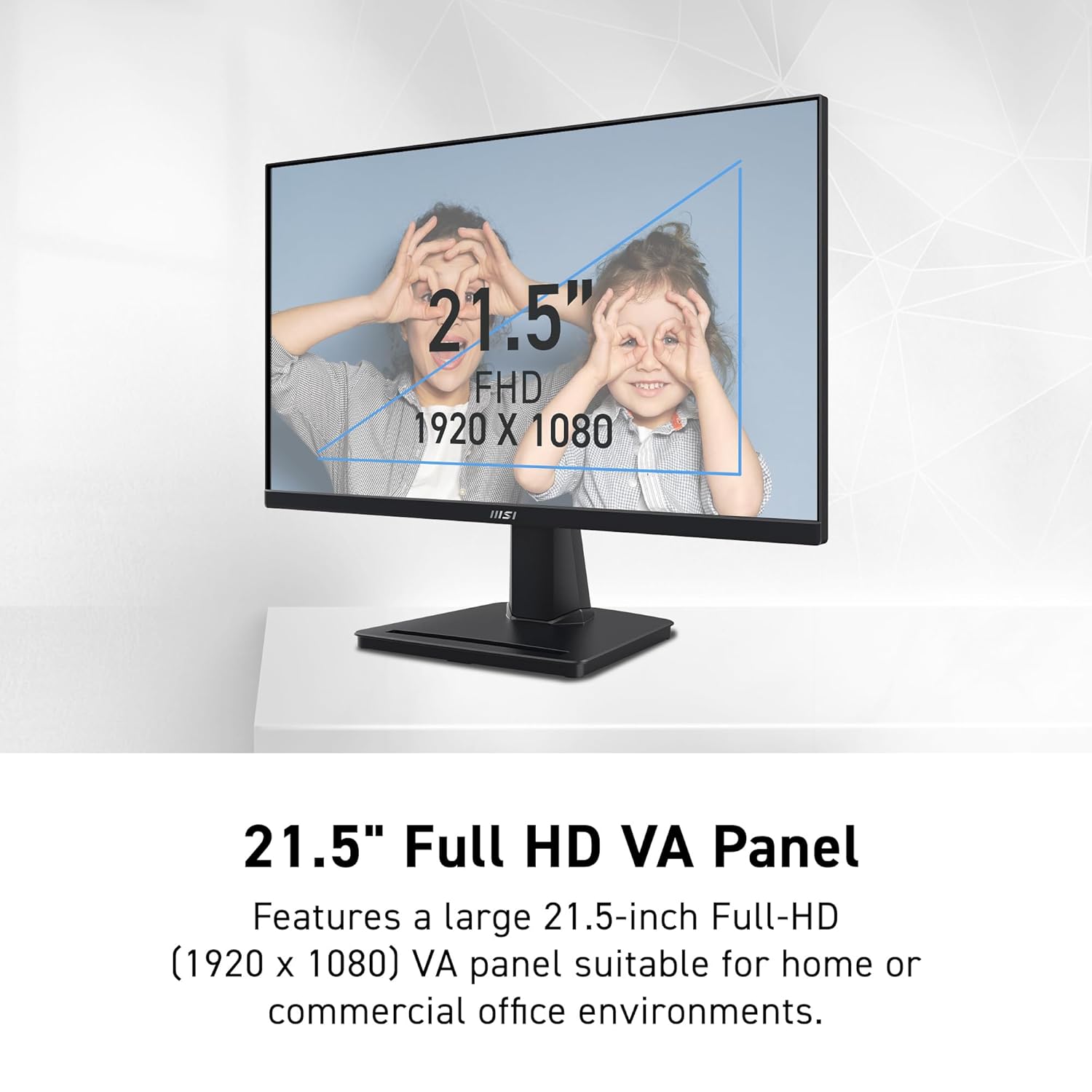 msi PRO MP225V, 22-inch, 1920 x 1080 (FHD) Computer Monitor, 100Hz, Adaptive-Synch, HDMI, Video Port, Low Blue Light, Eye-Q Check, VESA Mountable, Tilt, 1ms, Black