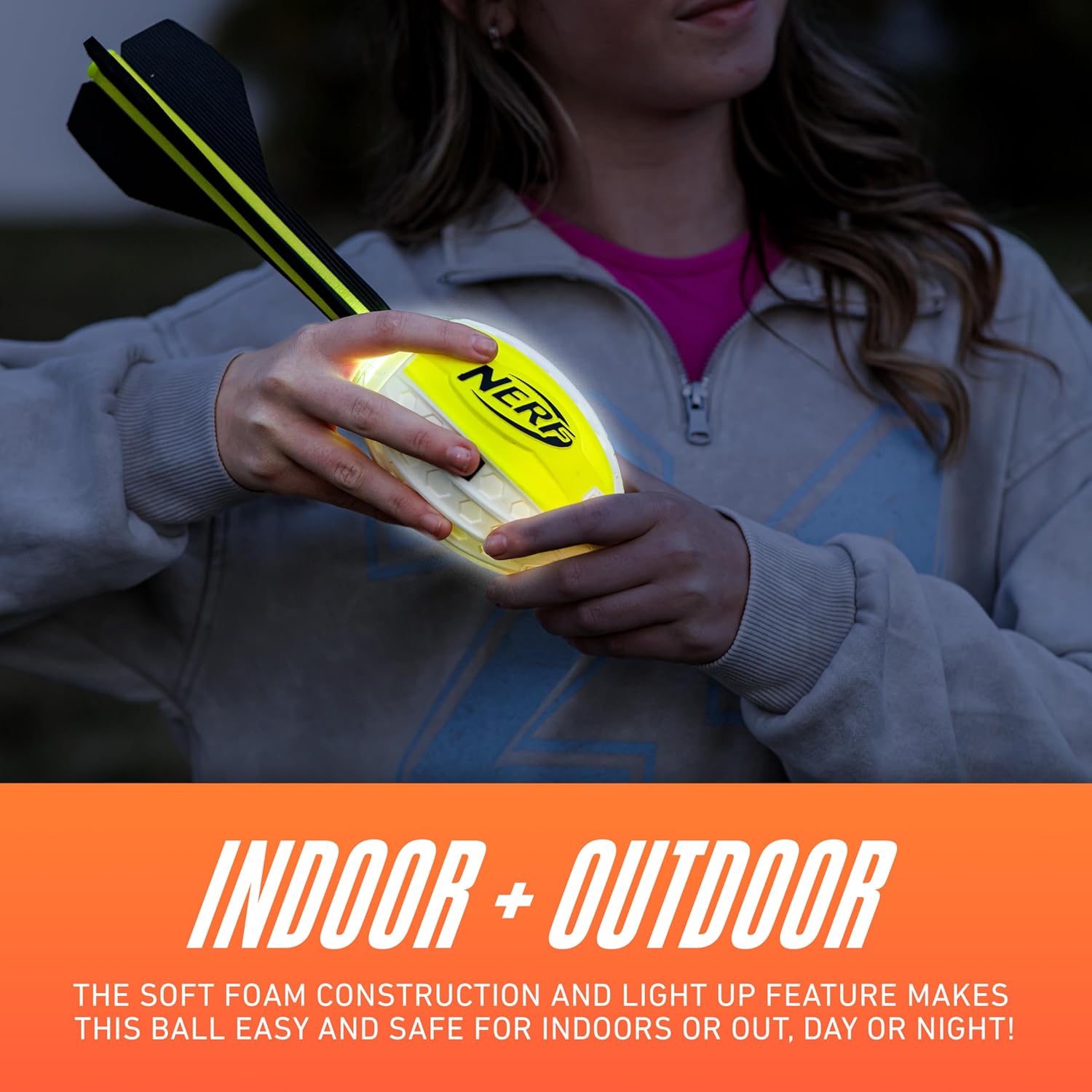 IMPACT ACTIVATED- Simply throw or catch the football to illuminate the night.