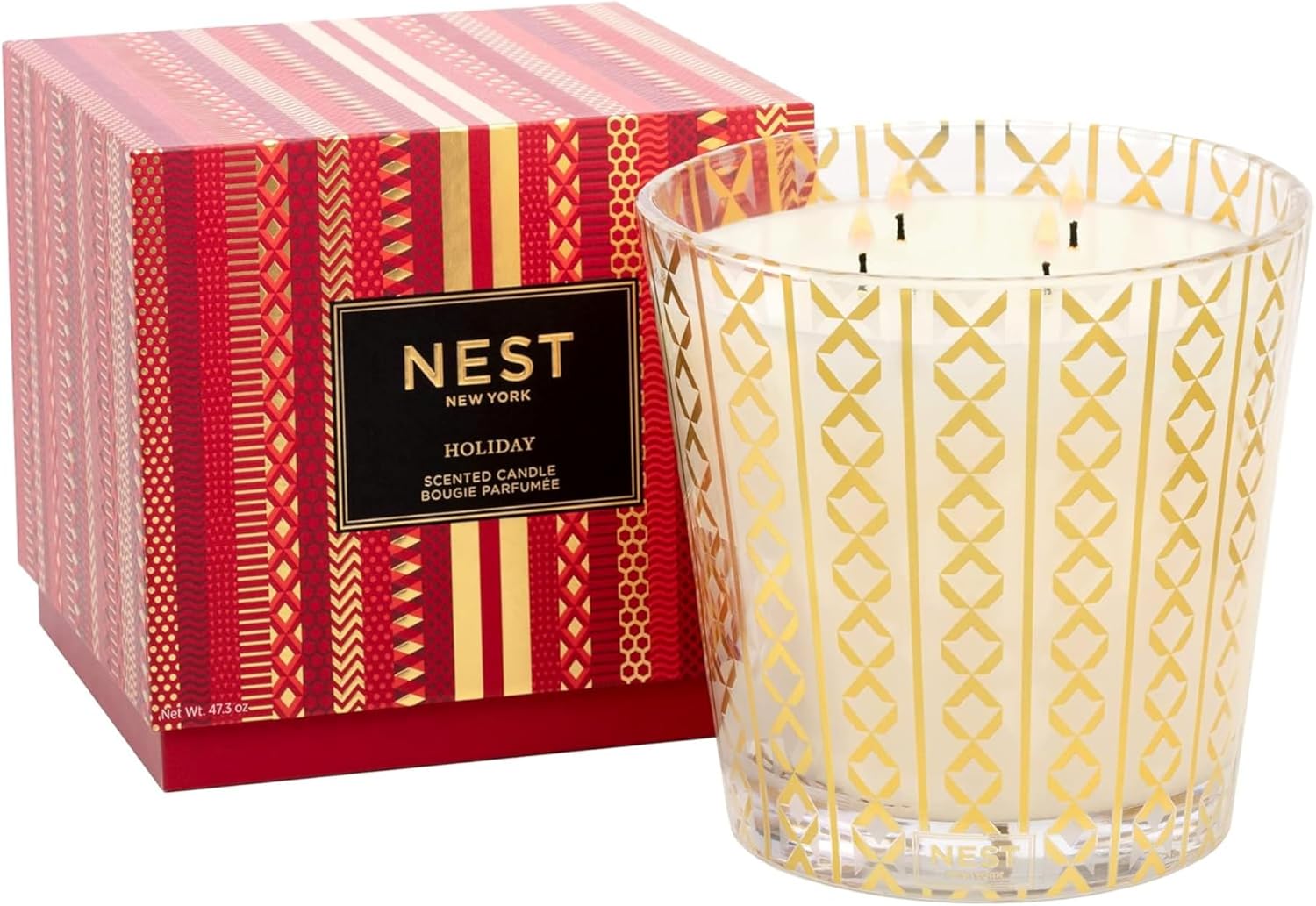 NEST New York Scented Luxury 4-Wick Candle, Holiday – 43.7 oz – Up to 120-Hour Burn Time – Reusable Glass Vessel