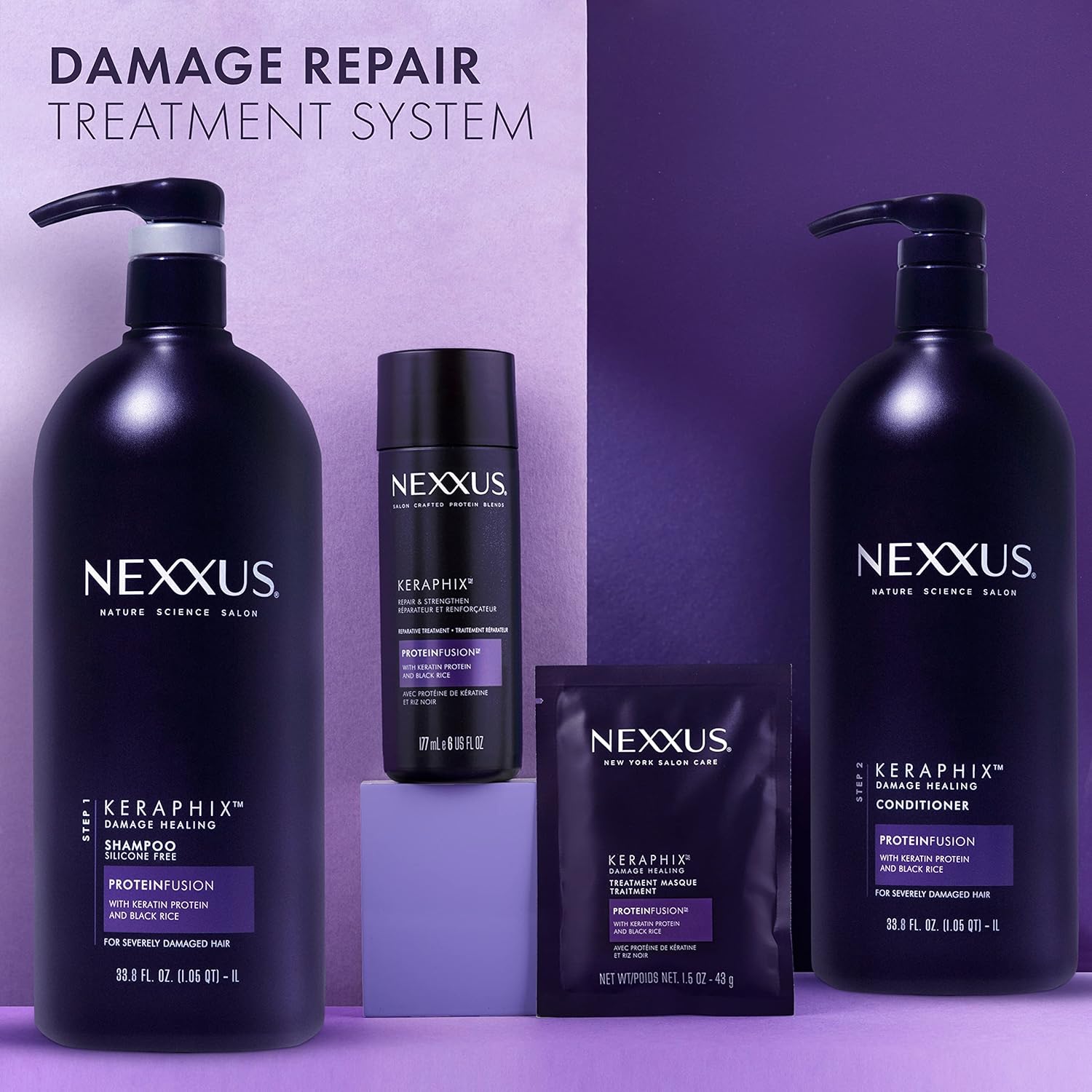 KERATIN TREATMENT INFUSED WITH PROTEINFUSION: Inspired by Nexxus New York City salon, Nexxus shampoo with Keratin Protein and Black Rice is your new weapon to heal signs of damaged hair