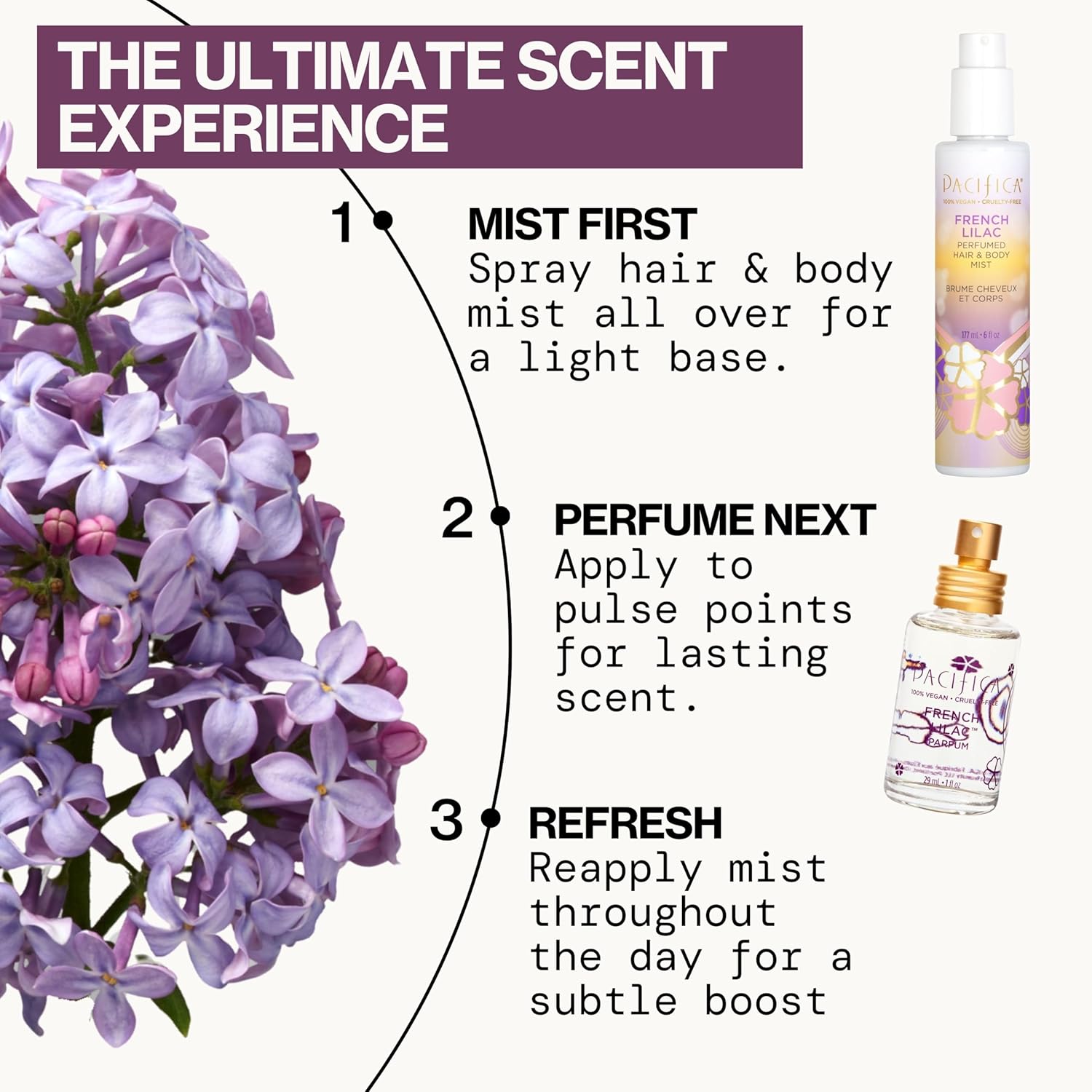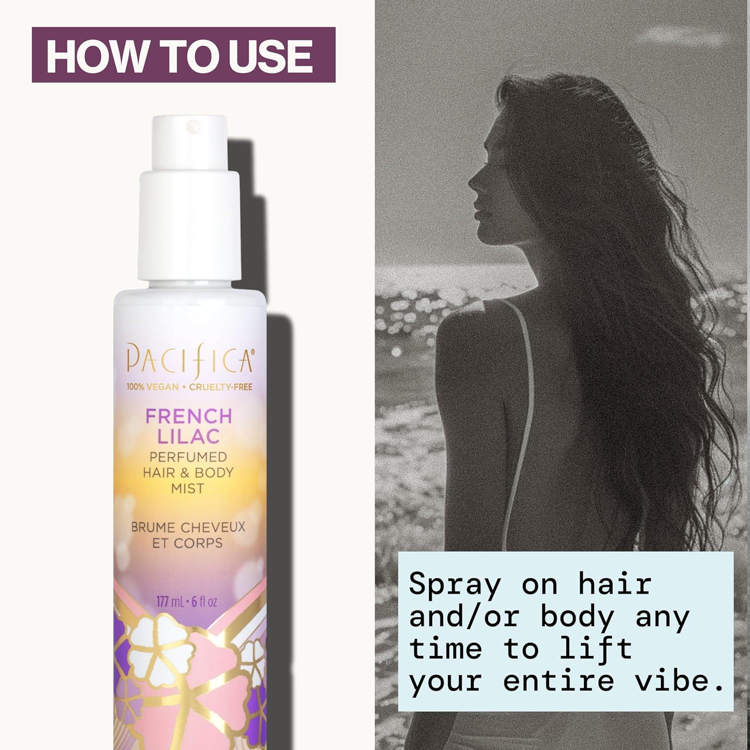 Pacifica French Lilac Perfumed Hair & Body Mist, Alcohol-Free Spray Designed For Head-To-Toe Wear, Vegan & Cruelty-Free, 6 Fl Oz