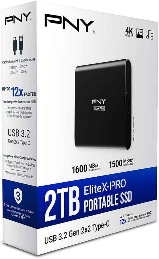 PNY EliteX-PRO 2TB USB 3.2 Gen 2×2 Type-C Portable Solid State Drive (SSD) – (PSD0CS2260-2TB-RB)