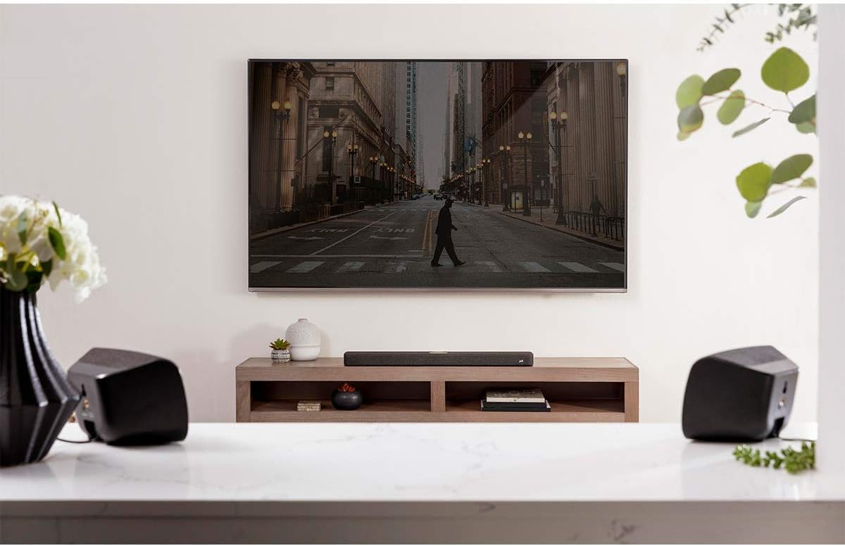 BUILT IN AMPS – Each speaker is equipped with a powerful custom-tuned 3” driver that delivers big sound, taking your movies and music up a notch