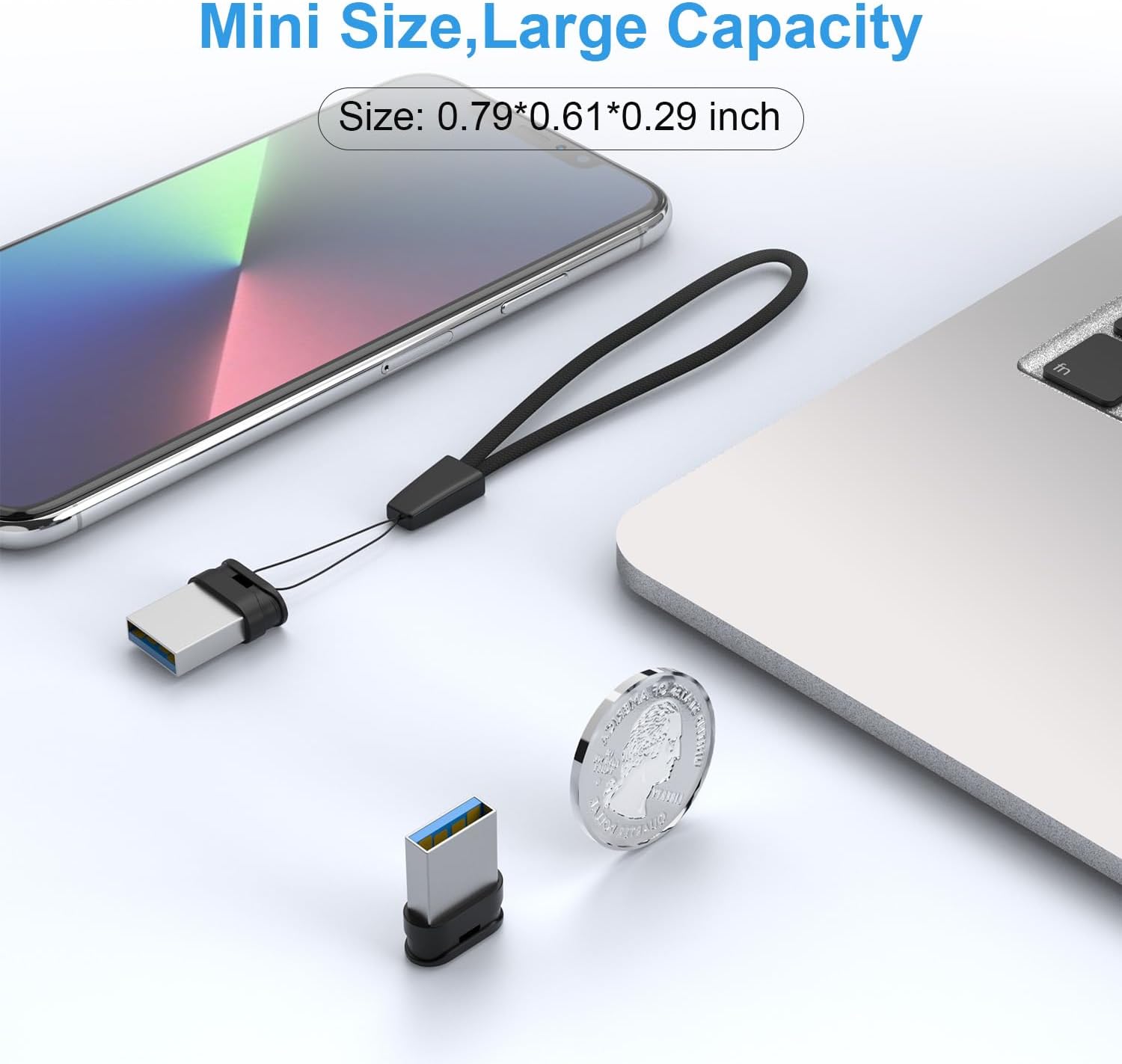 Material: ABS+Metal Reading Spead: 100MB/s Writing Speed: 35MB/s Unit Dimension: 0.79*0.61*0.29 inch/ 20.1*15.4*7.4mm Weight: 3g/pcs System Compatibility: windows 7/8/10/Vista/XP/2000/ME/NT Linux and Mac OS with USB 2.0 and below. Waterproof: Up to 72 hrs in seawater and shock-proof up to 1,500 gravitational acceleration. Temperature: Withstands -25°C to 85°C operating, -40°C to 85°C non-operating. Magnet-proof: Magnet-proof up to 15,000 gauss and X-ray proof up to 50 roentgen. Package Included: 1X USB 3.0 Mini Flash Drive, 1X Black Lanyard