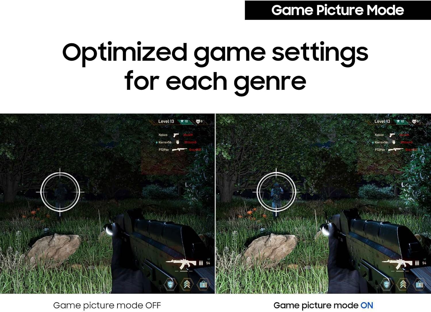 OPTIMIZED GAME SETTINGS FOR EACH GENRE: Gain a competitive edge with optimizable game settings.² Color and image contrast can be instantly adjusted to see scenes more clearly, while Game Picture Mode adjusts any game to fill your screen.