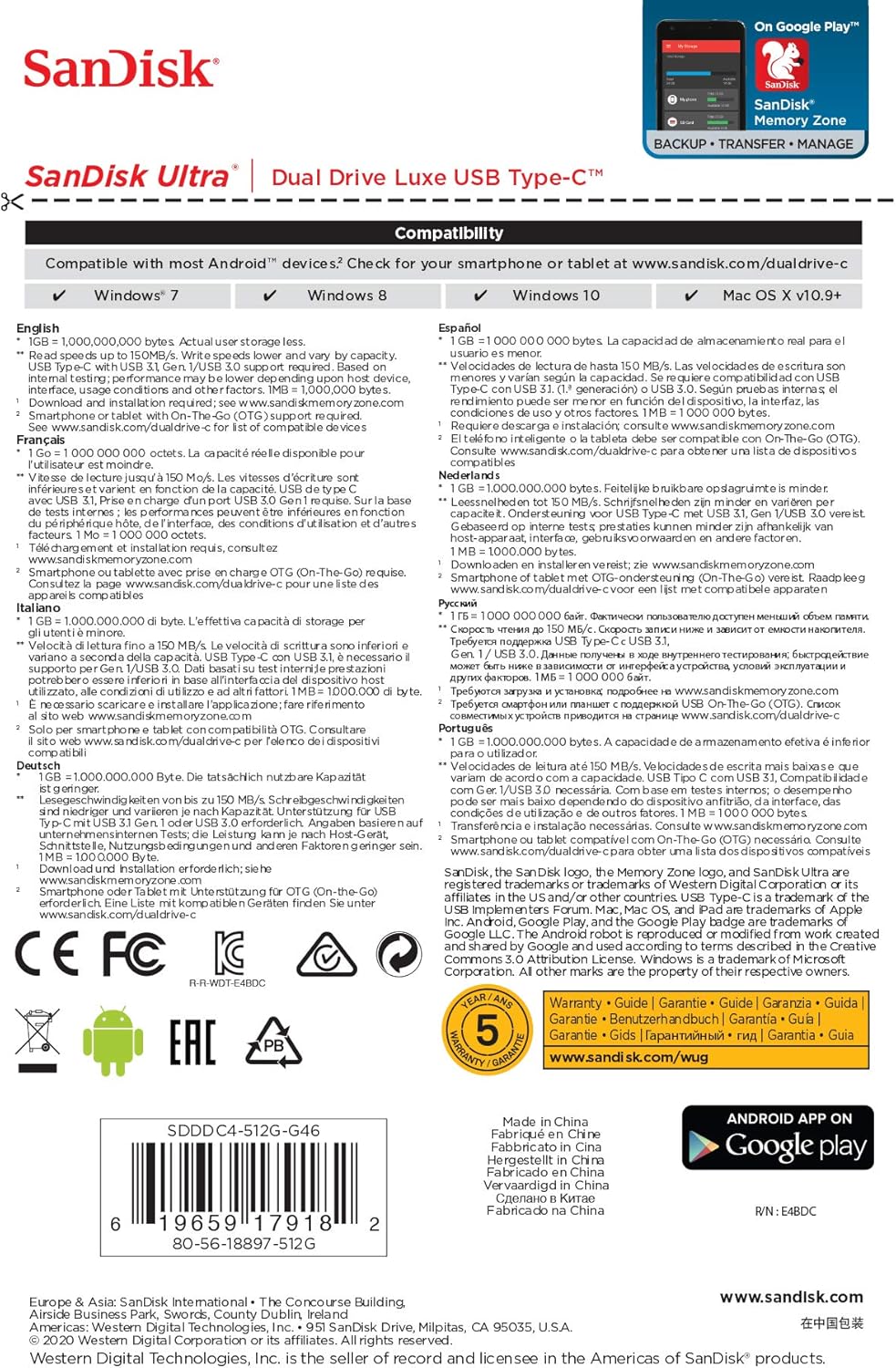 Looking for stylish storage that works across your USB Type-C and Type-A devices? Whether you’re taking amazing photos of your latest adventure or creating content in the office, the SanDisk Ultra Dual Drive Luxe is the all-metal, 2-in-1 flash drive that lets you easily move files between USB Type-C smartphone, tablets and Macs and USB Type-A computers.(2) Just plug in this premium drive to easily free up space on your smartphone or to automatically back up your photos, videos, music, documents and contacts.(3) Plus, the dual-purpose swivel design in a high-quality metal housing protects connectors and features a keyring hole to take your drive on the go. 1GB = 1,000,000,000 bytes. Actual user storage less. (1)Read speeds up to 150MB/s. Write speed lower and vary by capacity. USB Type-C port with USB 3.1 Gen 1/ USB 3.0 support required. Based on internal testing; performance may be lower depending upon host device, interface, usage conditions and other factors. 1MB = 1,000,000 bytes. (2)Mobile device requires USB Type-C port and On-The-Go (OTG) support. See official SanDisk Dual Drive-C website for list of compatible devices. (3)Download and installation of SanDisk Memory Zone app required. See official SanDisk Memory Zone website for more details..