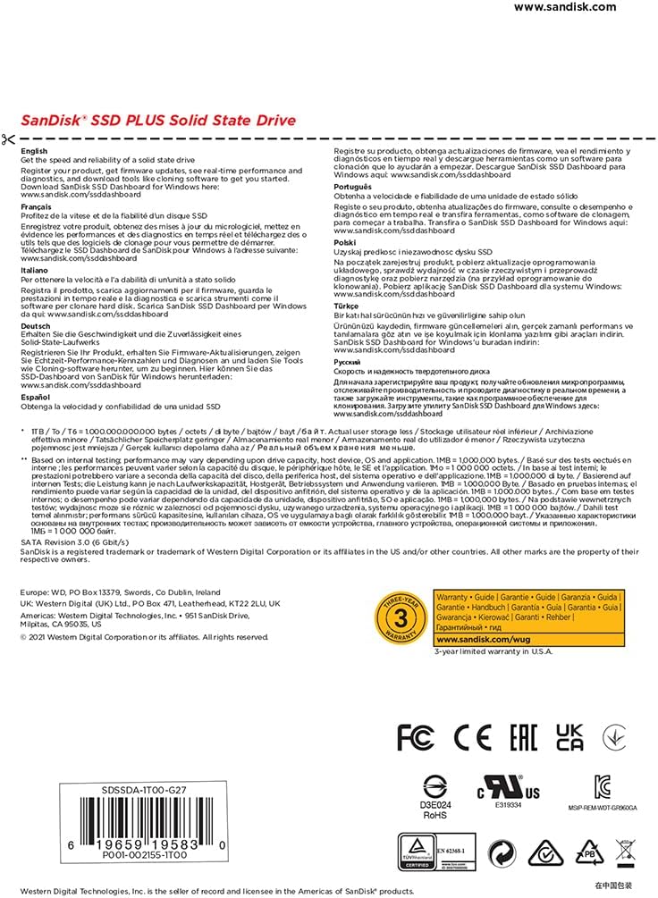 SanDisk SSD PLUS 1TB Internal SSD – SATA III 6 Gb/s, 2.5″/7mm, Up to 535 MB/s – SDSSDA-1T00-G27