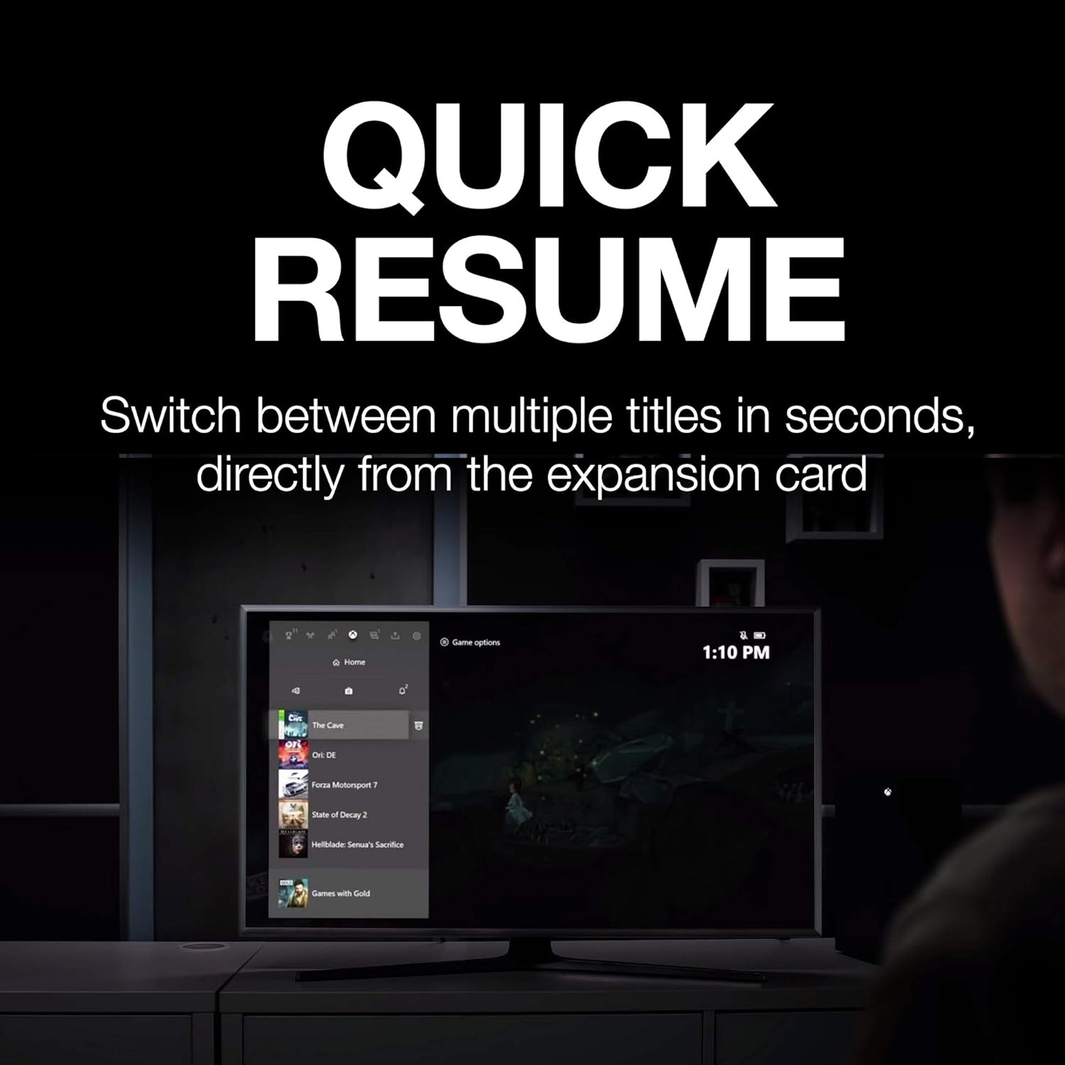 Quick resume means gamers can switch between multiple titles in seconds — directly from the internal SSD or the expansion card.