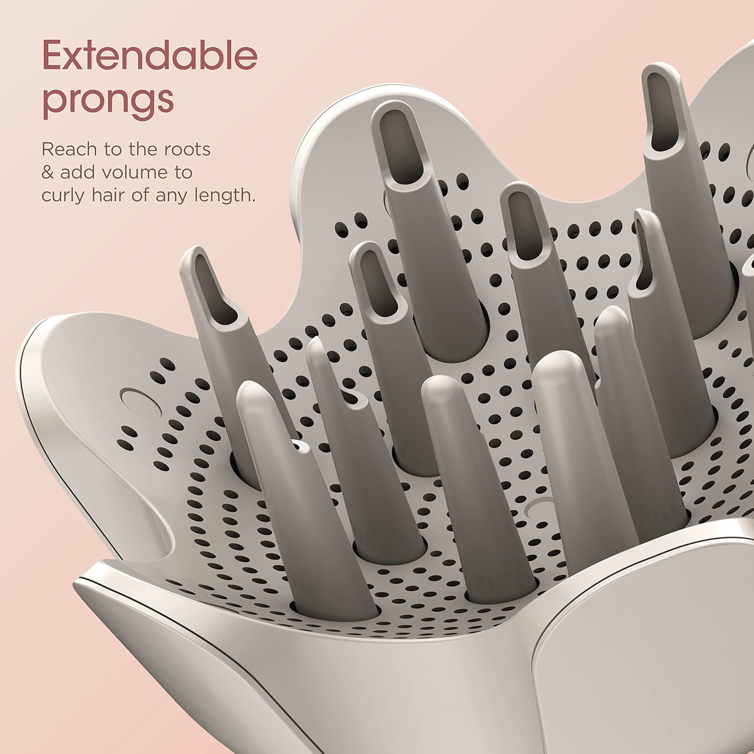 Shark XSKHD4DA FlexStyle Curl-Defining Diffuser, Attachment for Shark FlexStyle Blow Dryers, Styling Tool for Wavy, Curly, and Coily Hair, Enhance Natural Curls, Extendable Prongs, Stone