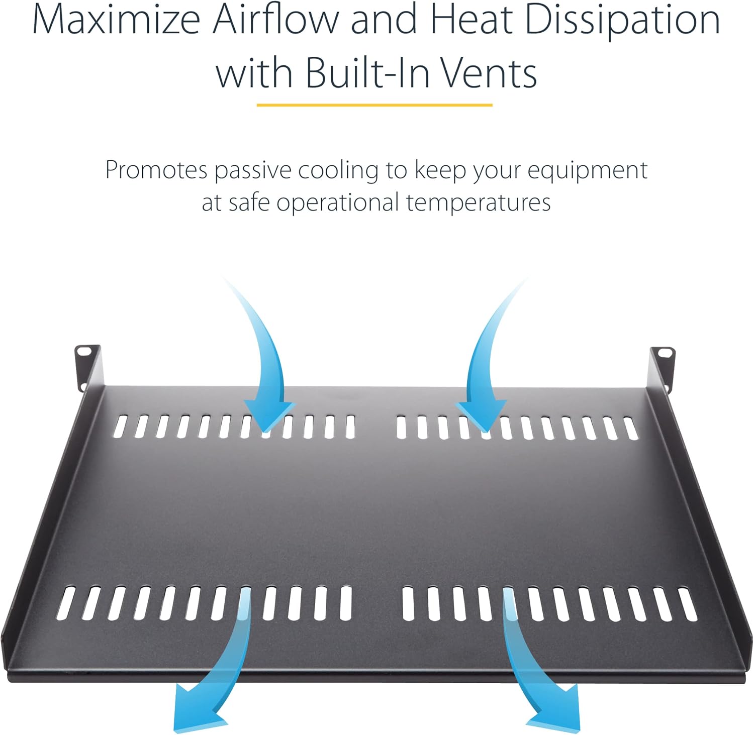 StarTech.com 2U Server Rack Shelf – Universal Vented Rack Mount Cantilever Tray for 19″ Network Equipment Rack & Cabinet – Heavy Duty Steel – Weight Capacity 50lb/23kg – 16″ Deep Shelf, TAA