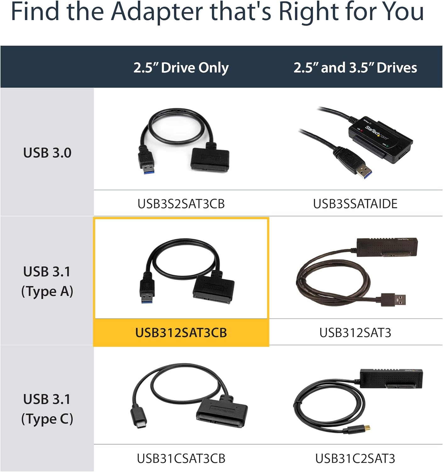 StarTech.com USB 3.1 to 2.5″ SATA Hard Drive Adapter – USB 3.1 Gen 2 10Gbps with UASP External HDD/SSD Storage Converter (USB312SAT3CB)