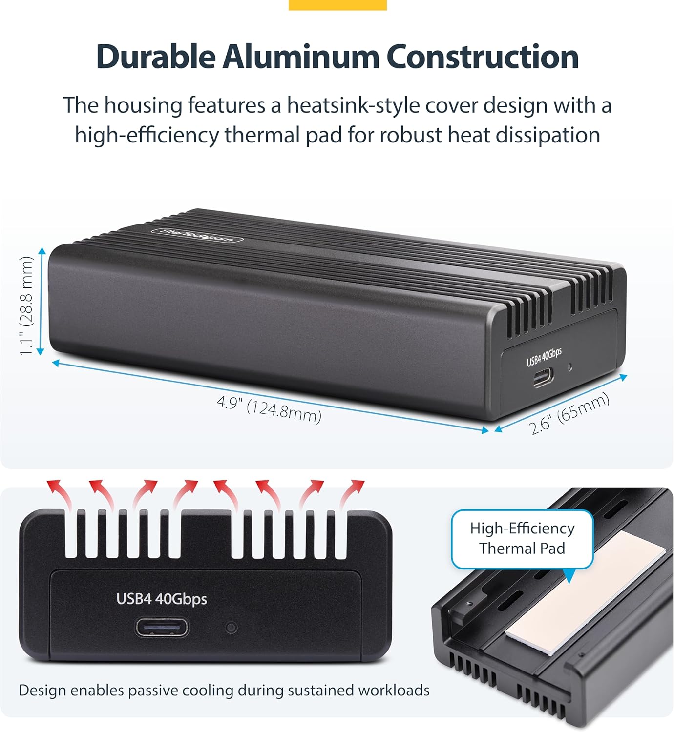 StarTech.com USB4 M.2 NVMe Enclosure, 40Gbps, External USB-C/Thunderbolt NVMe SSD Enclosure, Aluminum Heatsink Case, B+M/M-Key
