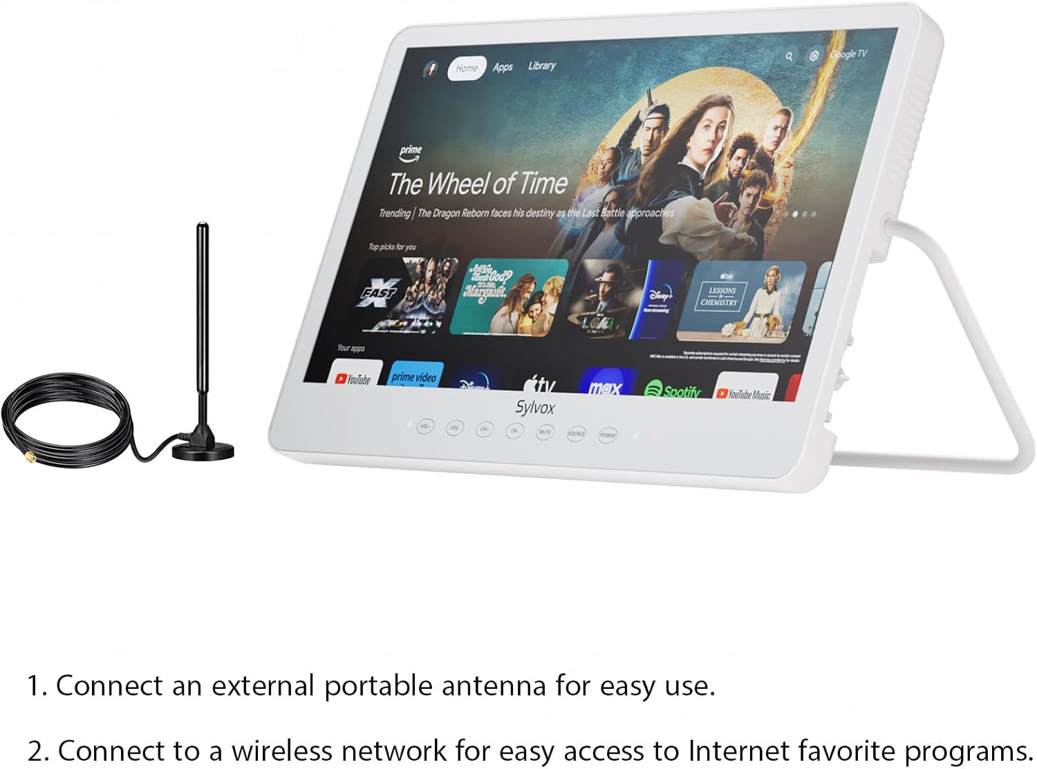 WIRELESS MOBILE TV: Whether in the bedroom, kitchen, or bathroom, you can let Sylvox portable TV accompany you, with built-in WiFi, you can download your favorite apps and browse your favorite content. Built-in battery power, no wires to worry about.