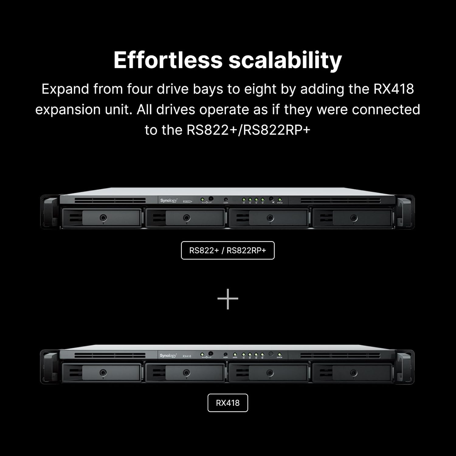 Scale up to 8 drives with one Synology RX418 Expansion Unit